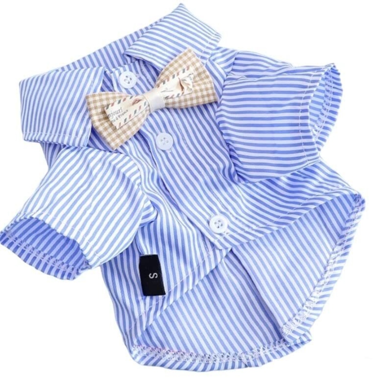 RIOSTUDIO 犬服 春夏用 犬の服 チョーカー付 ストライプシャツ 蝶ネクタイ付 ボーダーシャツ 夏用 薄手 小型犬 中型犬 大型犬(①ライトブルーボーダー,L)