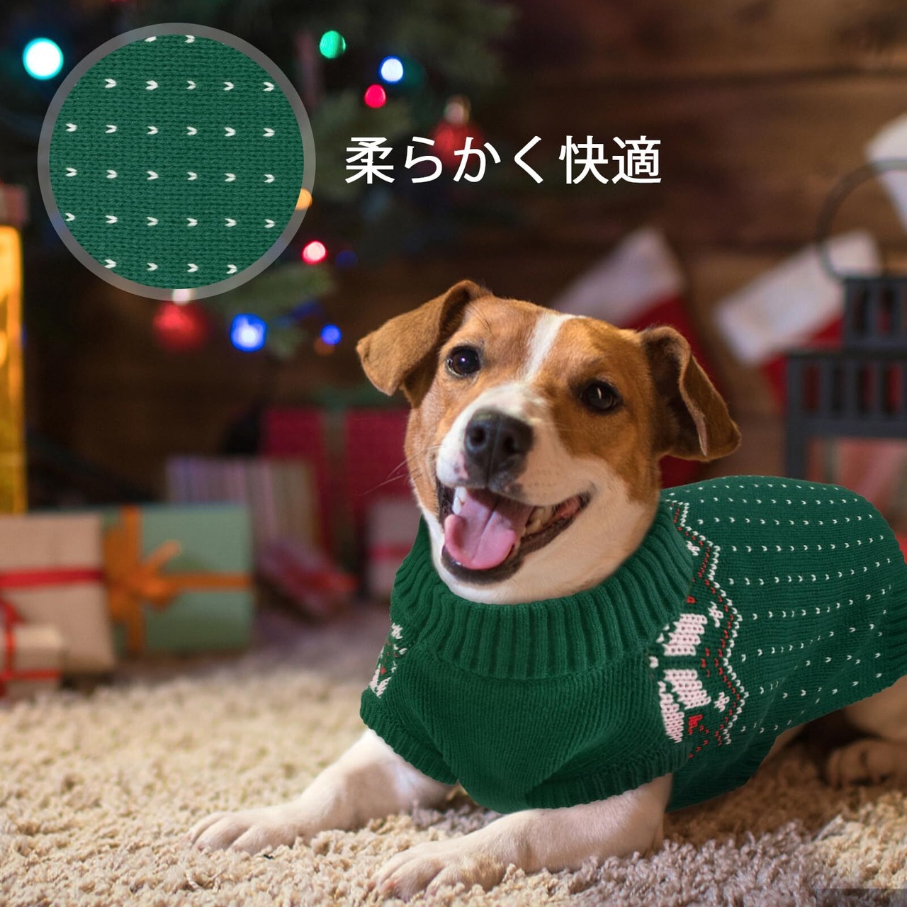 Kuoser 犬服 秋冬 犬のセーター、猫服 小型犬 服 中型犬服 ジャケット 防寒 ペットふく ハイネックセーターの定番 柔軟 厚み 着せやすい 小型犬 中型犬 秋冬 防寒 可愛い 誕生日 聖夜 新年 グリーン