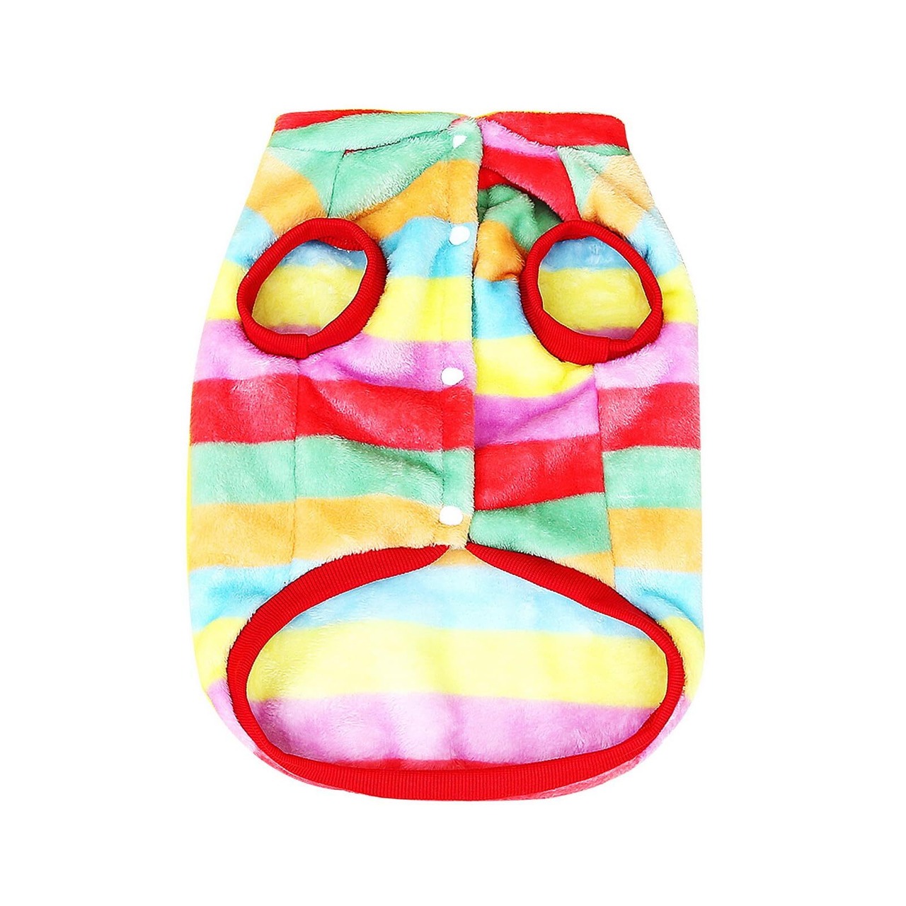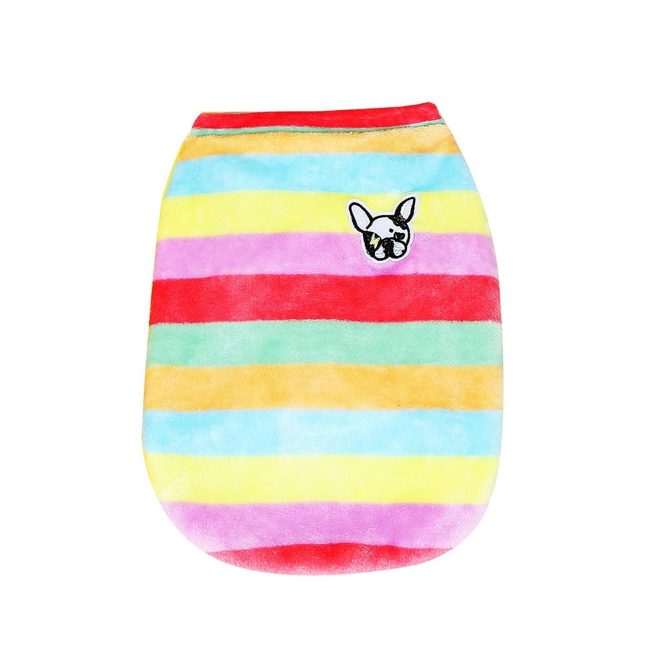 SMALLLEE_LUCKY_STORE 犬服 ペット服 縞模様 フレンチ ブルドッグ服 トレーナー セーター 犬の服 小中型犬 春秋冬ドッグウェア 犬ウェアー 柔らかい 弾力性のある 部屋着 お散歩お出かけウェアに,虹,L