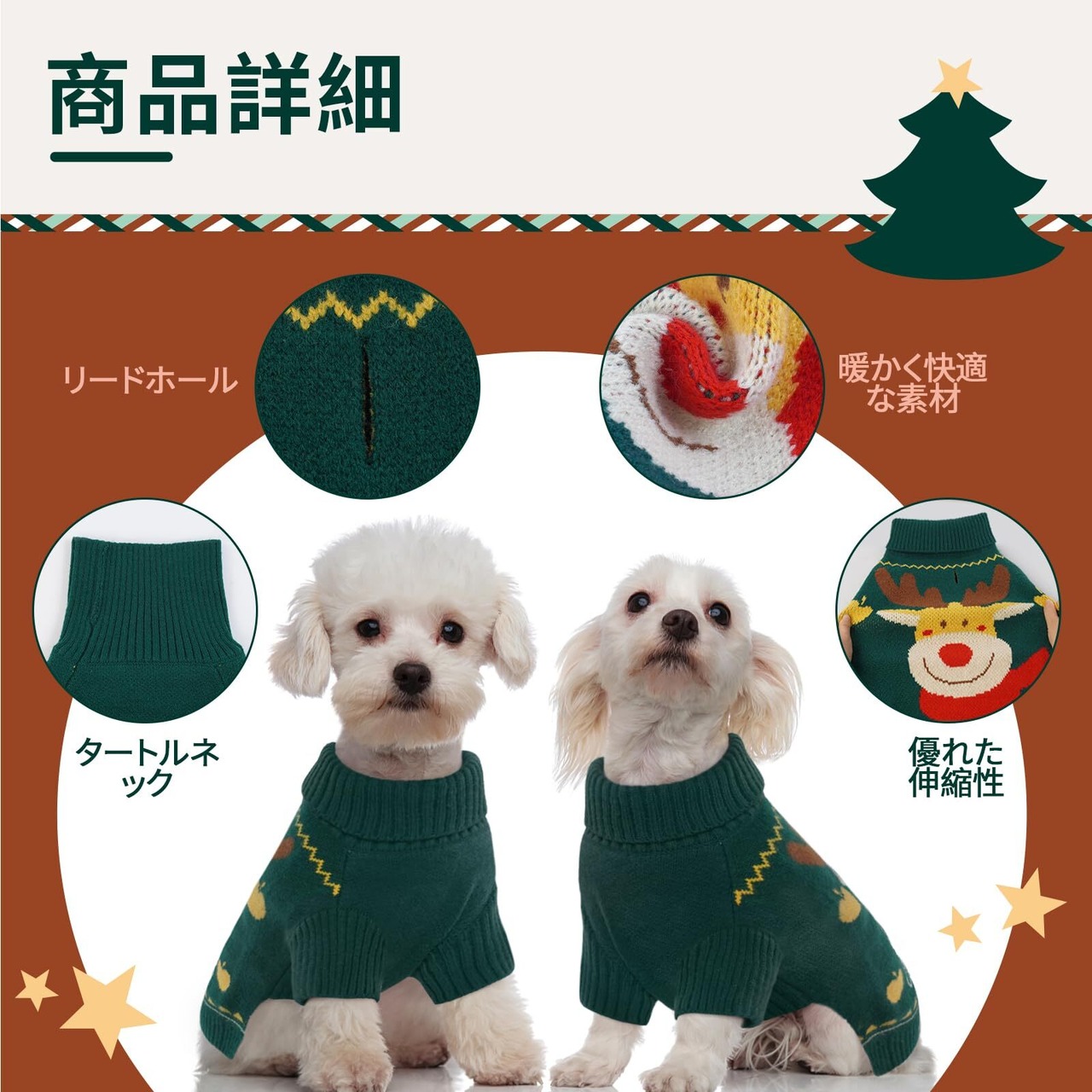 Kuoser犬服 犬用セーター クリスマスパターン 秋冬服 ソフト 防寒保温 ニット タートルネック 伸縮素材 リードホール 暖かい 快適 クリスマス 聖夜 ハロウィン 誕生日 パーティー服 グリーン2XL 胸囲71cm