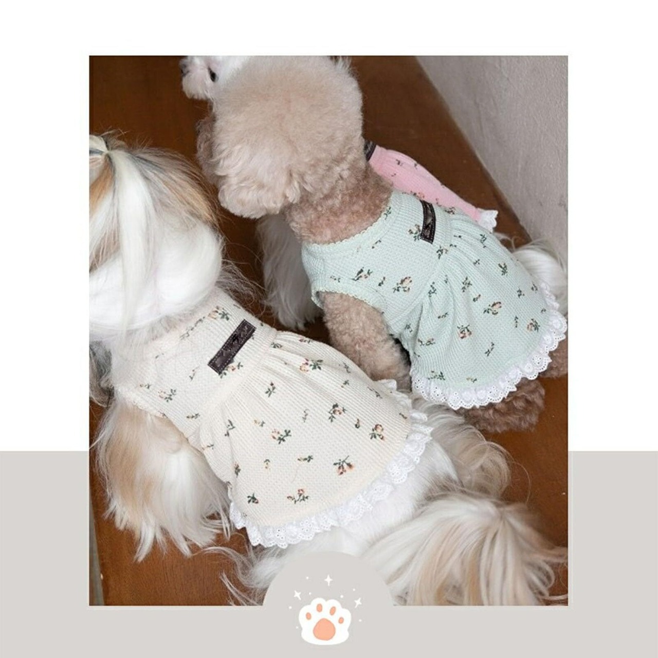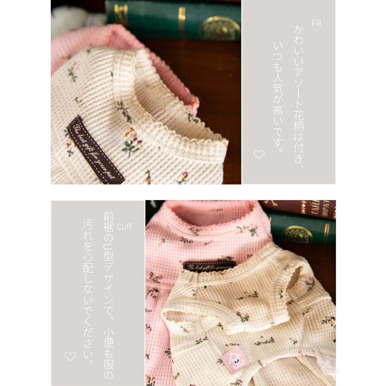 【上品で可愛らしいデザイン】優雅なフラワープリントにレースのアクセントを加えた、愛らしくも上品なデザインがワンちゃんを一層魅力的に演出します。