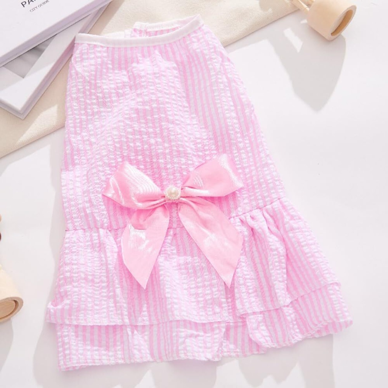 YBGGJO 犬服 蝶結び ワンピース ストライプ ドレス スカート 春夏 通気 お姫様 ファッション 可愛 小型犬 中型犬 猫 お出掛け お散歩 記念撮影 ペット服 (ピンク, S)