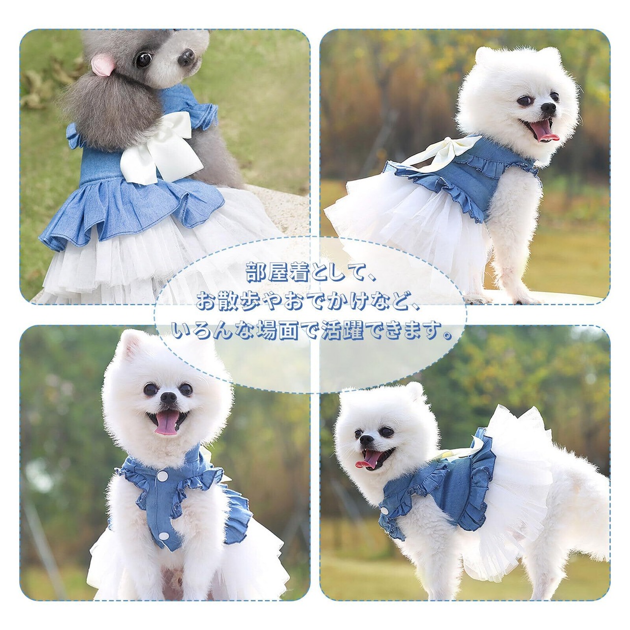 Jimjis 犬服 ワンピース 春夏 通気 お姫様 ドレス スカート 袖なし 薄手 軽量 小型犬 猫 ペット服 犬の服 猫の服 小型犬 中型犬 洋服 脱毛保護 (ホワイト, S)
