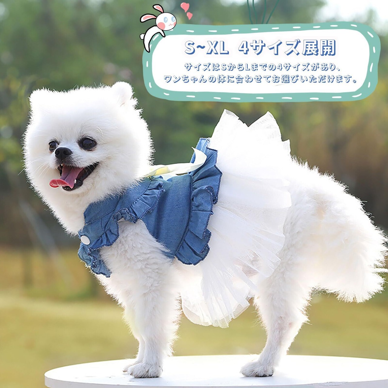 『夏に大活躍なワンピース』サイズはSからXLまでの4サイズがあり、ワンちゃんの体に合わせてお選びいただけます。結婚式、記念日パーティー、特別な写真など、御家族のペットさんにも特別なお洋服で参加できます。