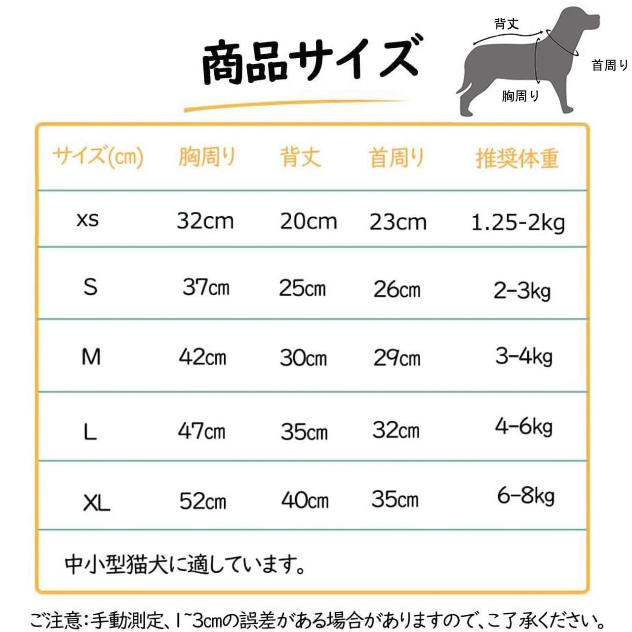 【注意】ご購入前にニーズに応じてサイズを決定し、実際のサイズが優先されます。服のサイズが異なるため、1〜3cmの誤差がございます。
