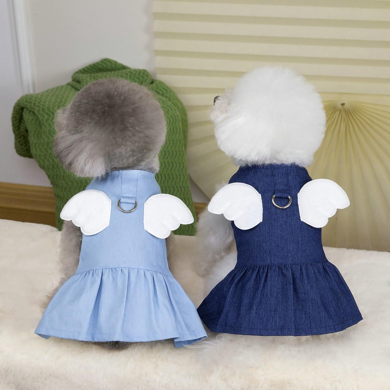 Bornoon 犬服 ワンピース 春夏 通気 お姫様 薄手 デニムスカート 袖なし 羽根デコレーションで リードDカン付き 洋服 可愛いワンピース 犬 服 猫 服 小型犬 中型犬 洋服 記念撮影 脱毛保護 (アクアブルーエンジェル, M)