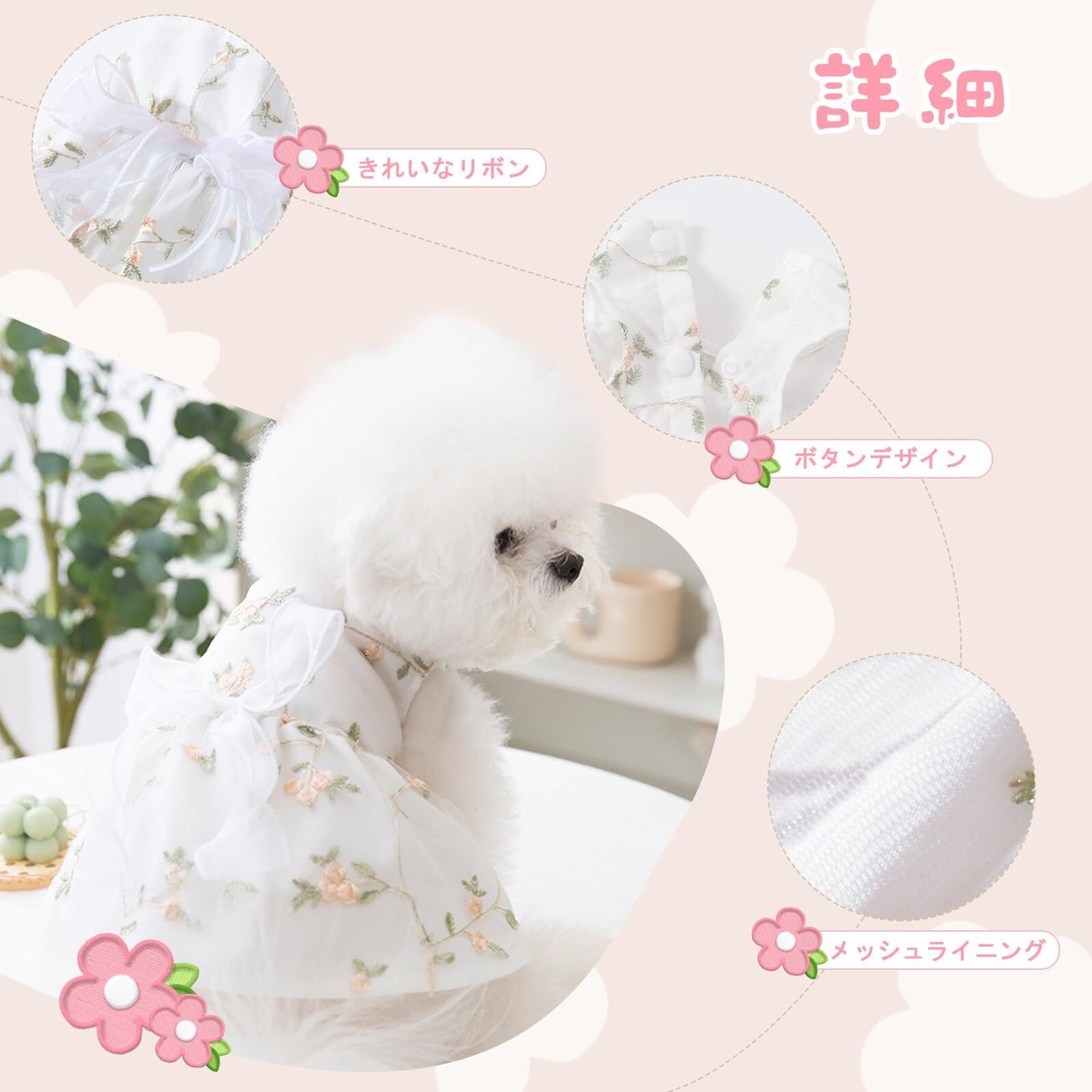 AmzBarley 犬 服 春 夏 ワンピース レース ホワイト 蝶結び プリンセス おしゃれ 可愛い 華やか お姫様 犬の服 夏用 袖なし 薄手 通気性 涼しい ウェディングドレス 洋服 脱毛保護 日焼き防ぐ 吸水 速乾 猫服 結婚式 お祝い 記念パーティー ペット服 小型犬 中型犬 猫 お祝い 記念パーティー 写真
