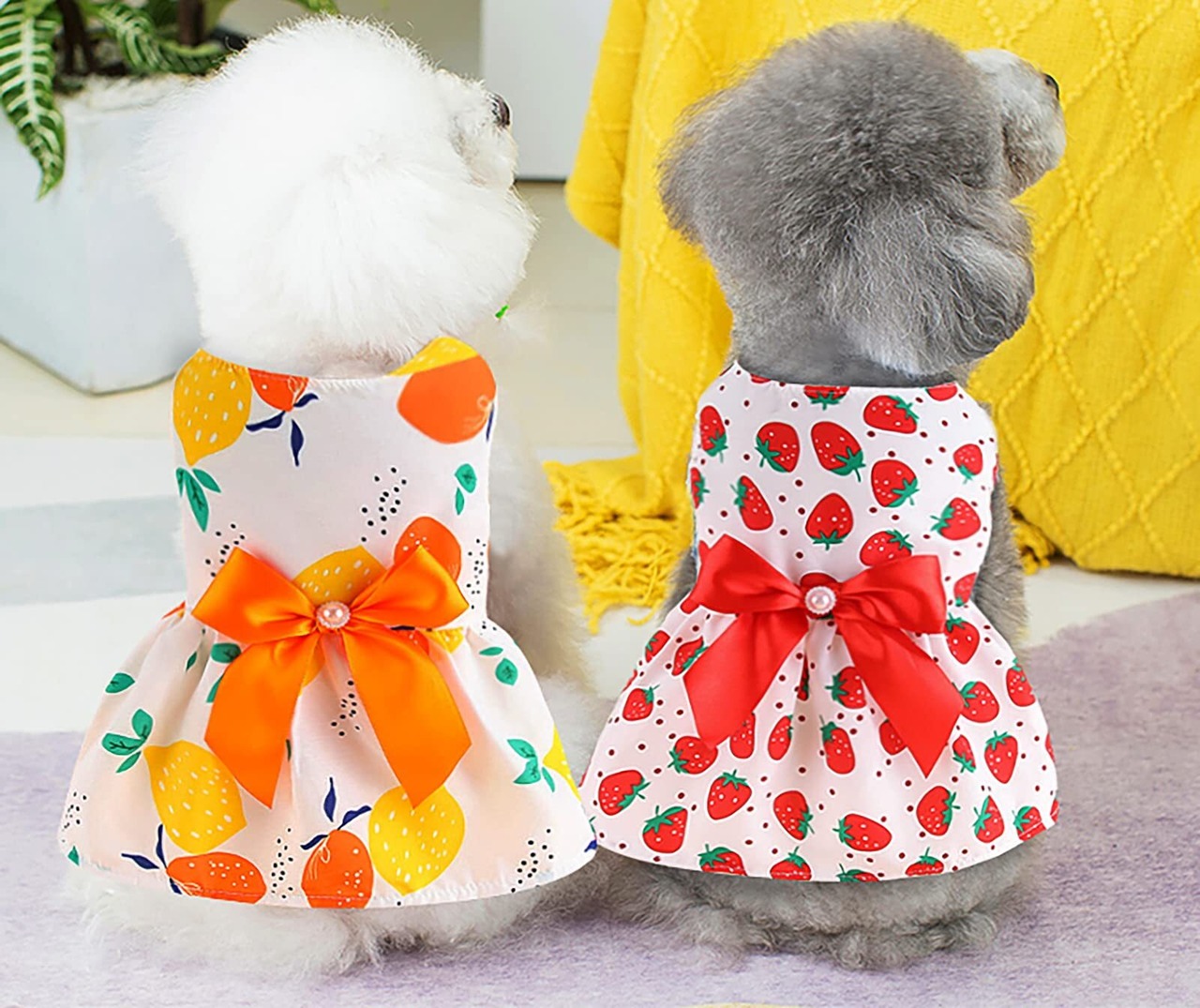 AmzBarley 犬 服 春 夏 ワンピース 小型犬 犬 ドレス 洋服 可愛い 蝶結び リボン いちご柄 人気 夏服 ペット服 犬の服 スカート おしゃれ 涼しい 通気性 ソフト ドッグウェア ファッション ペットウェア 犬猫 洋服 小中型犬 犬用 猫用 お散歩 お出かけ