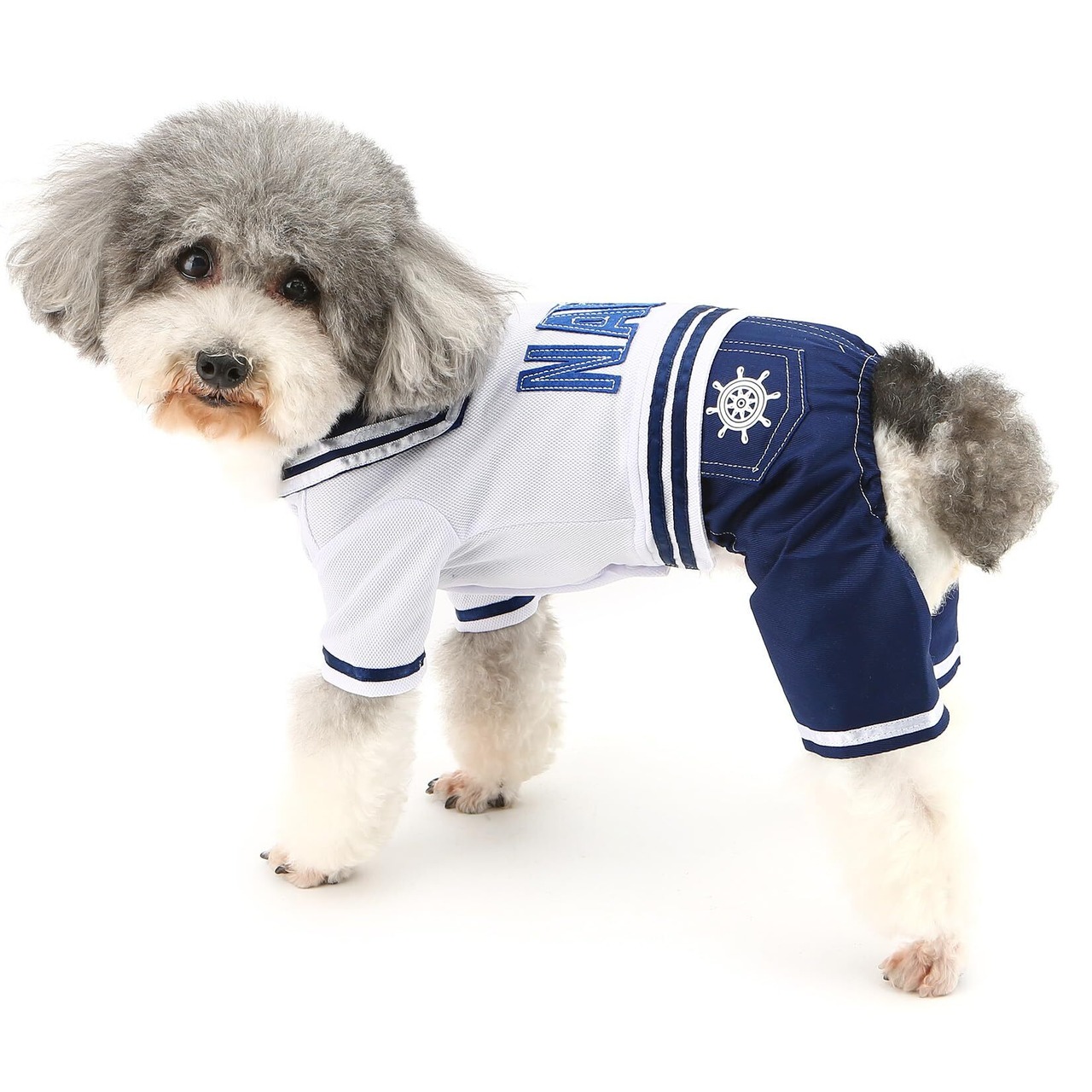 ZUNEA 犬の服 ロンパース つなぎ 海軍風 犬服 四足 セーラー服 おしゃれ 小型犬 洋服 春 夏 秋 ロンパース Tシャツ カバーオール 可愛い オーバーオール ドッグウェア コスチューム お散歩 お出かけ M