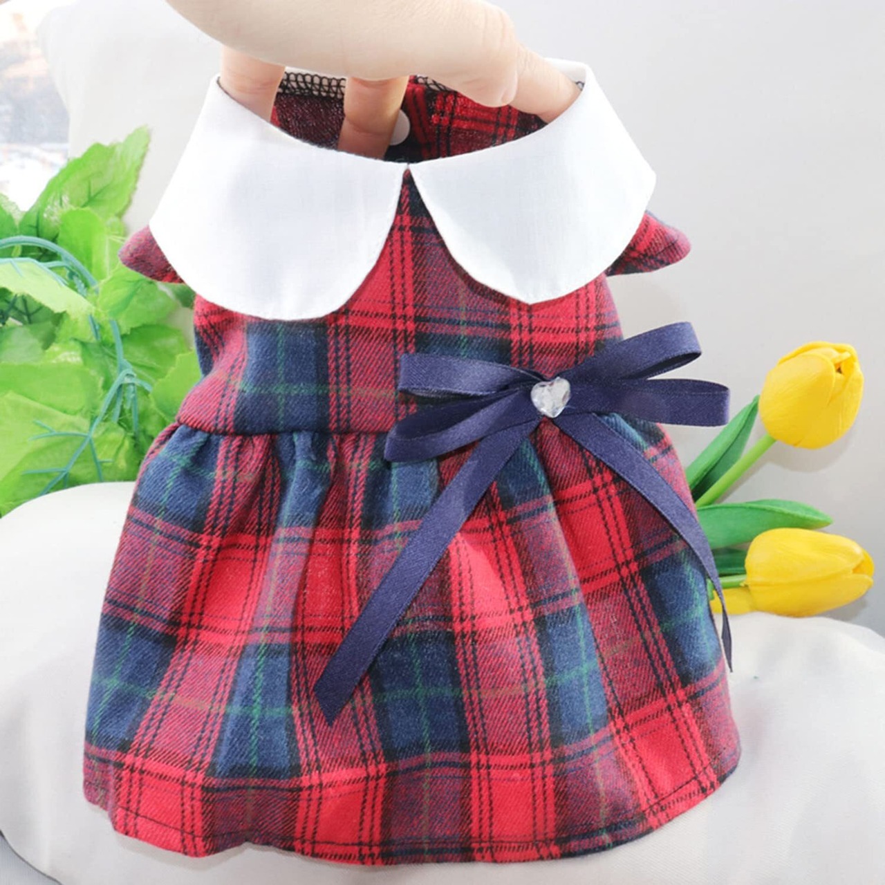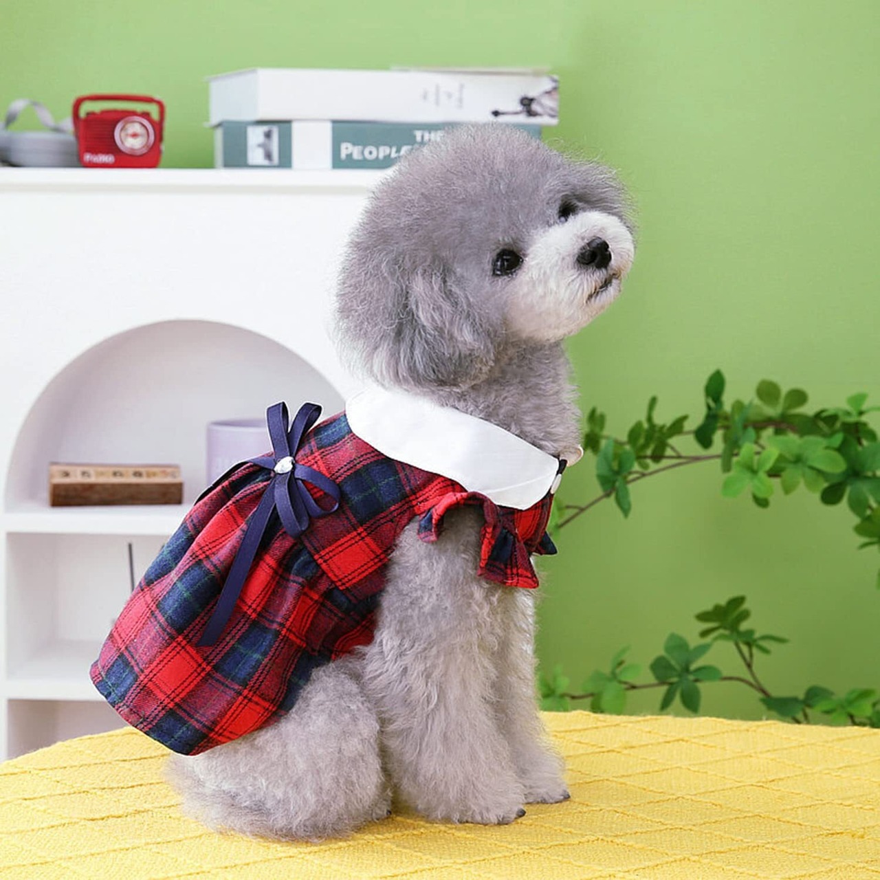 WEILFYONK 犬服ワンピース春夏秋ワンピースチェック柄夏犬ドレスペット服犬服スカート綿製小型犬中型犬かわいいリボン脱毛保護の日焼かない猫服記念撮影ペット服通気散歩お出かけ吸水速乾服 (レッド, M)