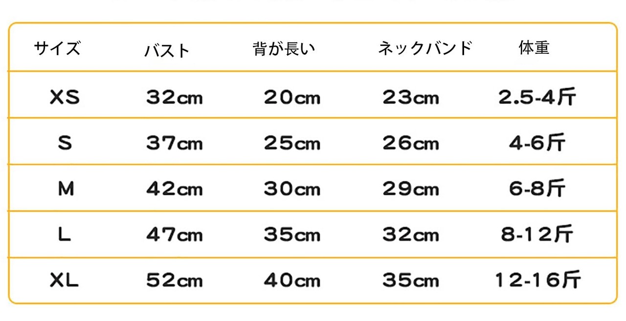 注意:購入前に必ずペットのサイズを測定し、実際のサイズを確認してください。ペット服のサイズは平置きで手で測定したもので、1~3 cmの誤差があり、実際の色調とサイトの写真が異なる場合があります。何か問題があれば、いつでも連絡してください