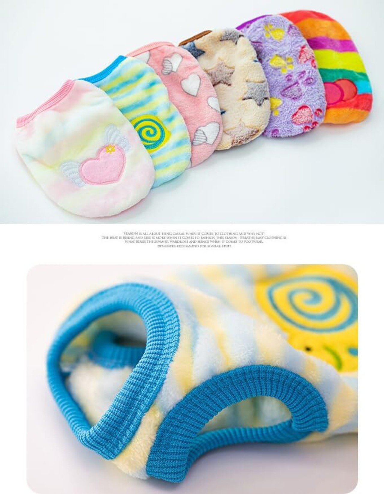 【サイズ】XXS,XS,S,M,L,XL. 6サイズ展開。小型犬 中型犬 大型犬一部が着れます。星柄やハート柄、数十種類の柄があります。袖のないタイプですので、着脱簡単になります。
