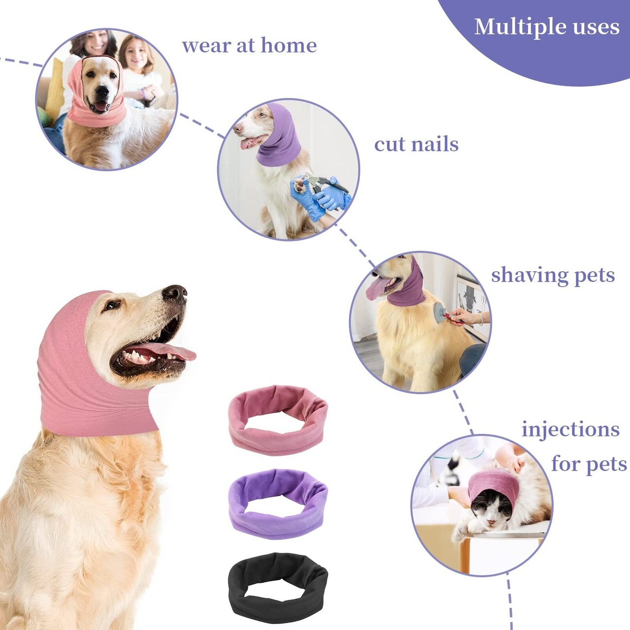 【犬の耳カバー】犬の耳カバーは厚く、快適で穏やかな圧縮により、騒音を減らし、犬を落ち着かせ、ペットの恐怖や不安を和らげることができます。