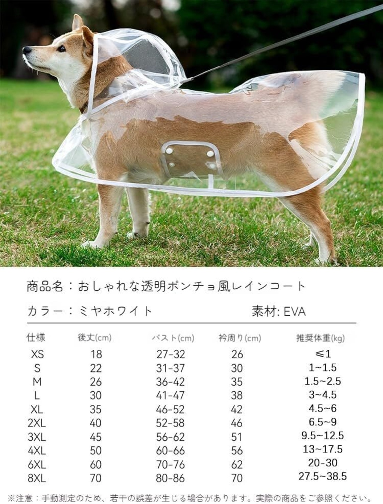 【ご注意】手作業で測っているので、多少の程度は誤差の許容範囲とさせて頂いております。サイズ表に掲載されている体重はご参考までに、実際にペットの胴回りや背丈を測定したあとご注文お願いいたします。