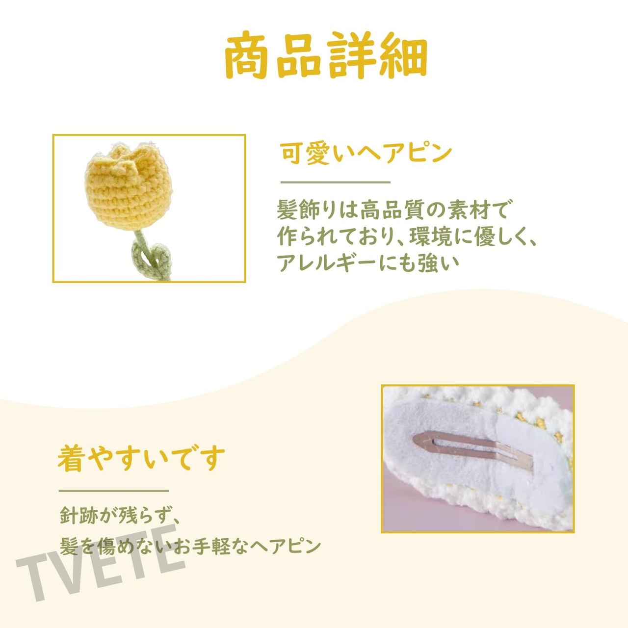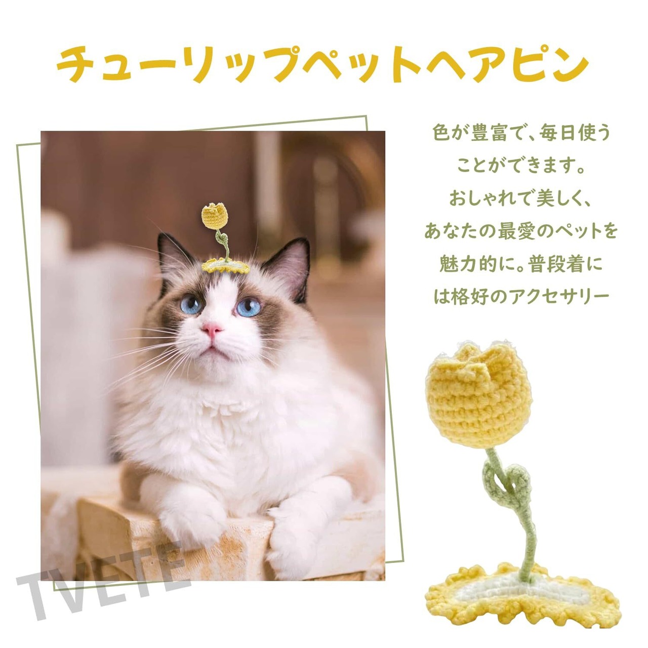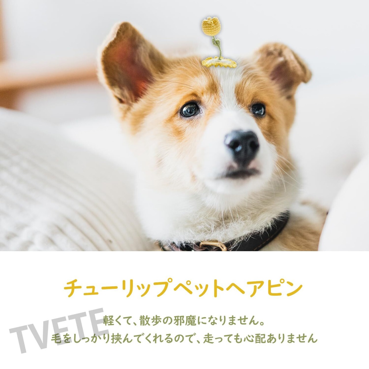 TVETE 犬 猫 髪飾り ペットヘアピン アクセサリー 可愛い 3D チューリップ すべり止め 着脱簡単 ヘアピン 軽量 前髪クリップ おしゃれ 子犬 猫用 ペット 髪飾り 毛糸 編み物 ヘアピン お散歩 お出かけ 誕生日 結婚式パーティー ペット用品 贈り物(黄色い)