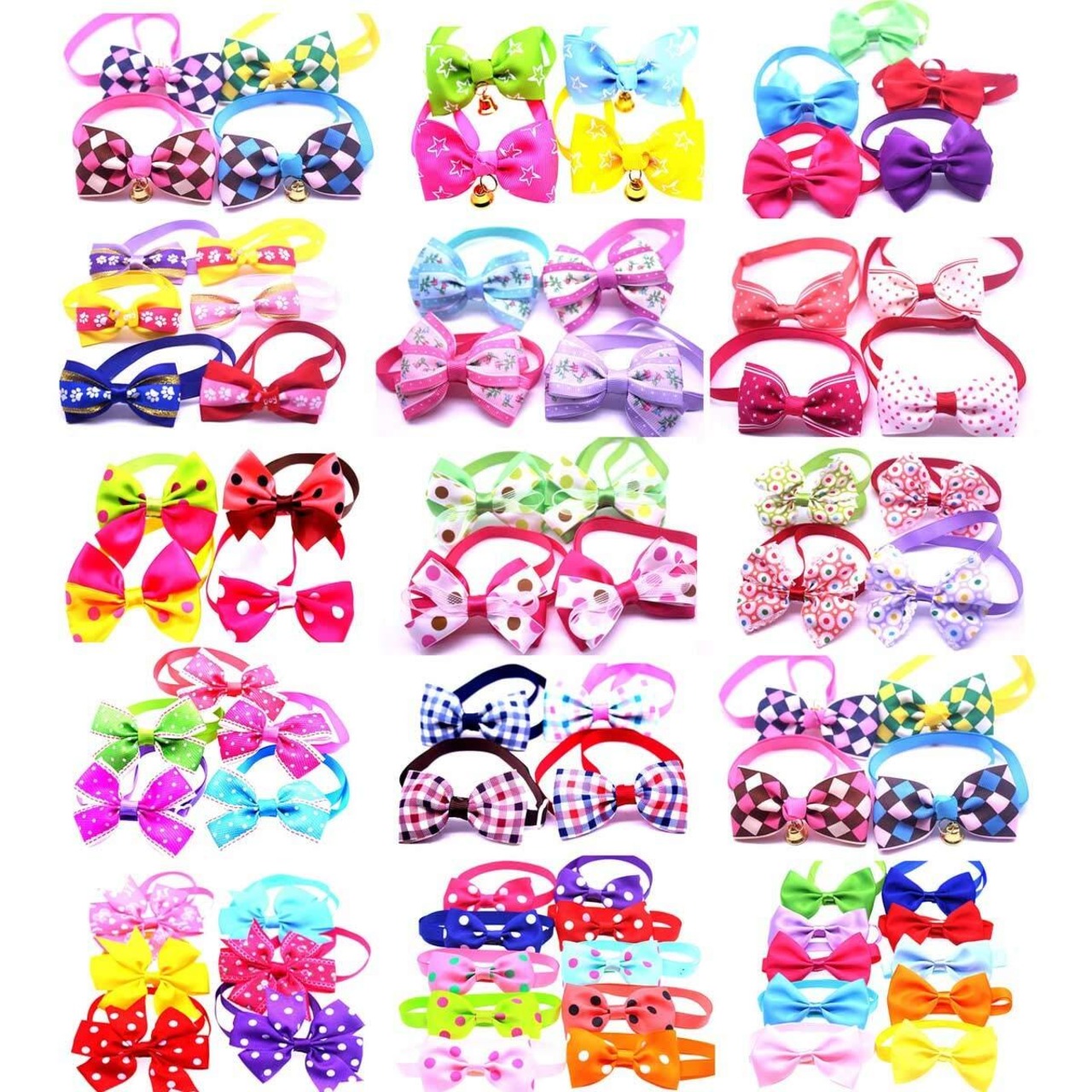 いろいろなデザインで100個セットペットトリミングリボン チョーカー ゴージャスリボン