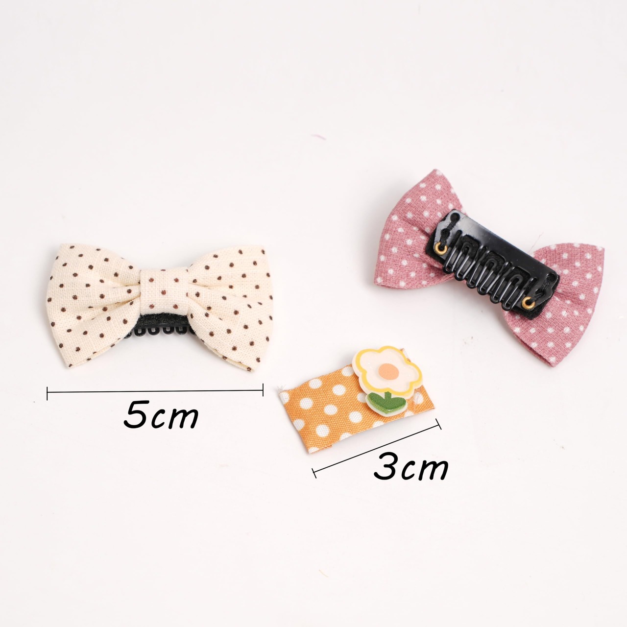 【セット内容】:5個セット ・【サイズ】:リボン約4.5cm×3cm コームピン約2.8×1.3cm・【素材】ポリエステル/パーツ、樹脂