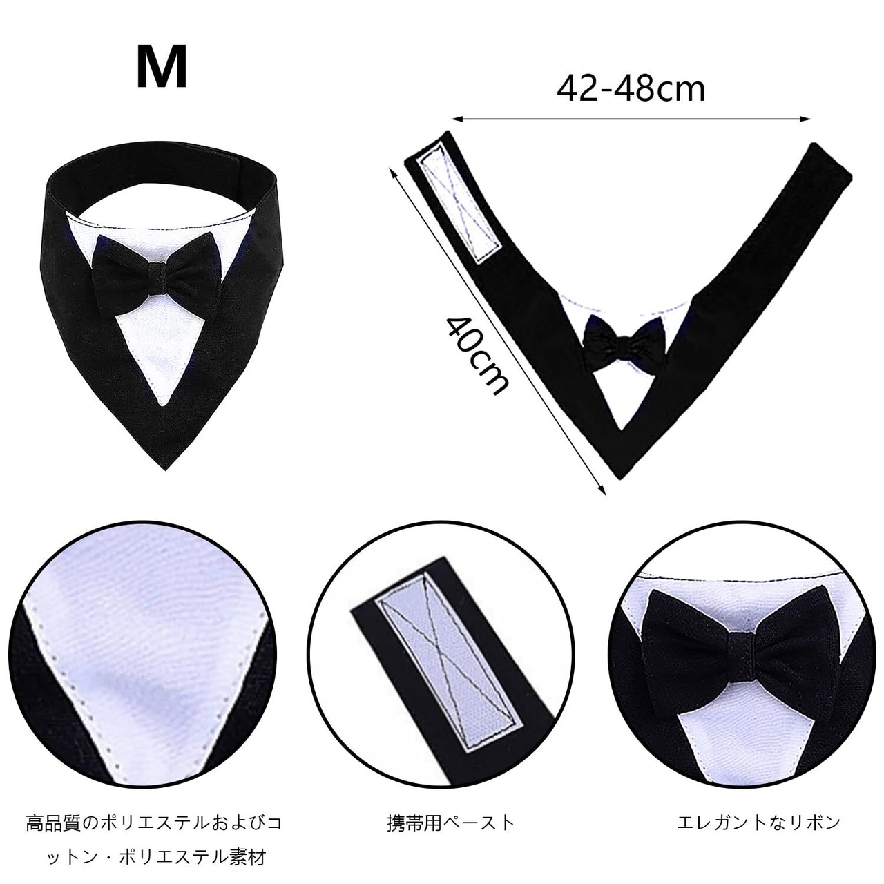 フォーマルドッグタキシードバンダナ 犬猫用スカーフ ペット首輪 唾液タオル ペット用三角タオル 調整可能 水洗い可 ペット 唾液タオル 蝶ネクタイとネクタイ付き 犬のタキシードコットンバンダナ 誕生日 結婚式 パーティー(M)