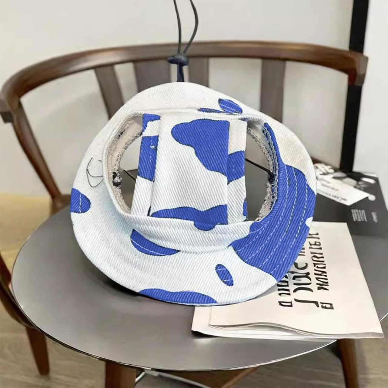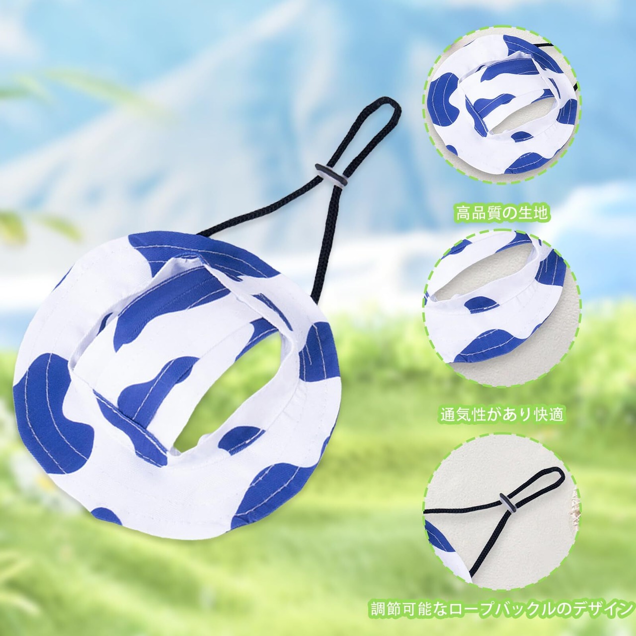 犬 帽子 耳出し 犬 日除け帽子 ペットキャップ 耳穴あり バケットハット 調節可能 おしゃれ 絞り染め 日焼け防止 紫外線対策 ドックウェア 夏 アウトドア 旅行 スポーツ お出かけ 散歩 小型犬 ペット用 (ブルーホワイト, S:1.5~3.5kg)
