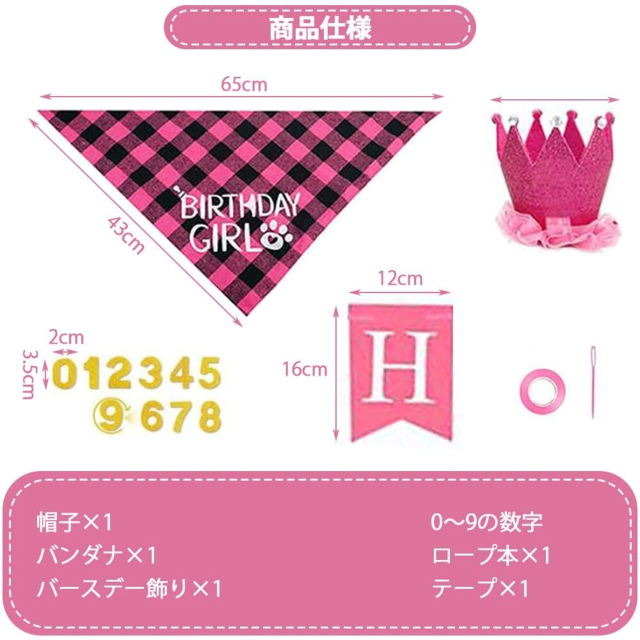 【内容物】帽子+猫 犬用バンダナ+バースデー飾り+0~9の数字。大切なペットの誕生日に可愛く飾り付けできるペット用誕生日セットです。