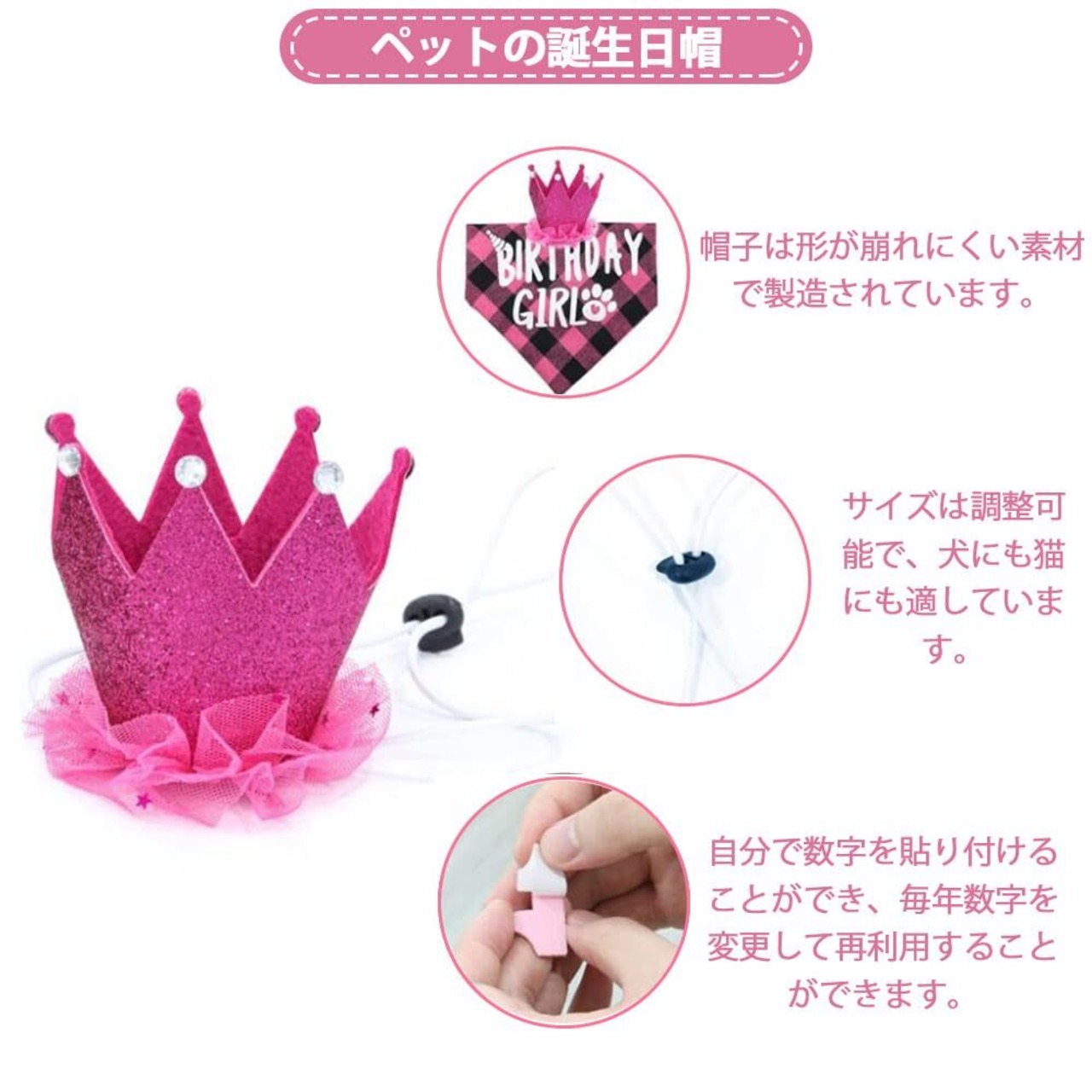GOODCHI 犬 誕生日 帽子 ペット 誕生日 飾り付け 犬 猫 誕生日帽子 バンダナ バナー ペットグッズ おしゃれ 誕生日 記念日 パーティー飾り (ピンク)