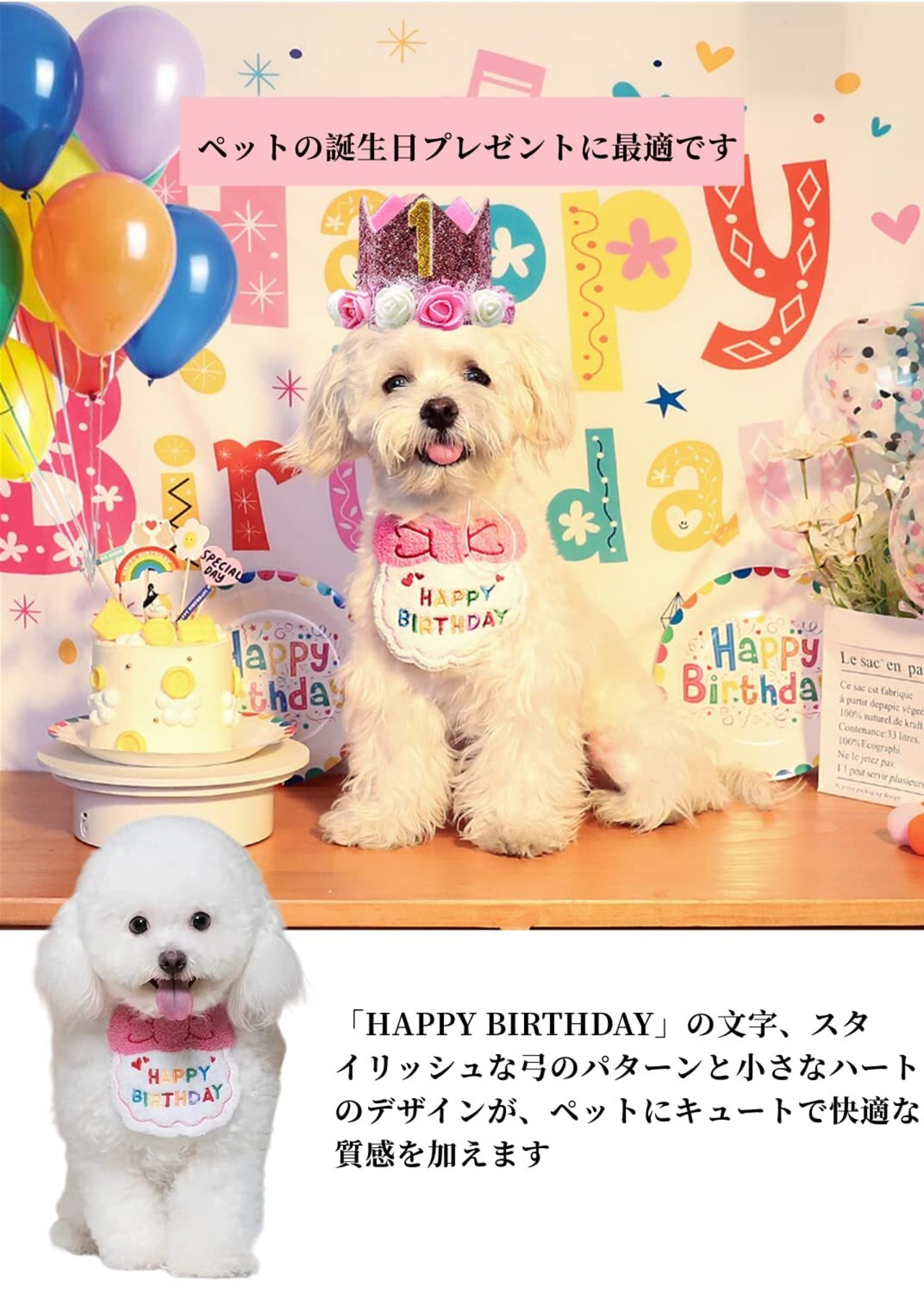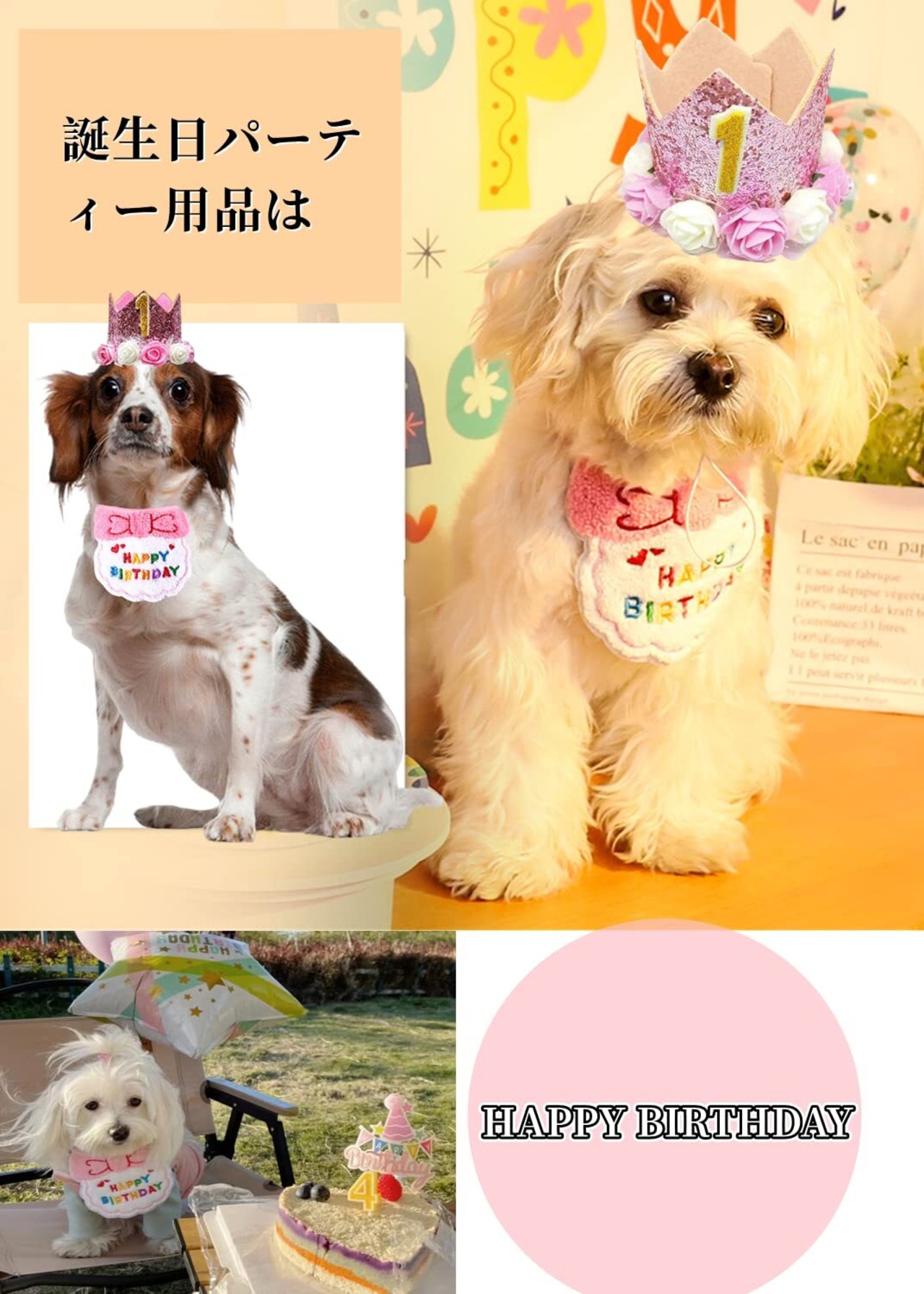 【犬誕生日グッズ】バンダナ、花付き帽子やキラキラしている数字を組み合わせるペット誕生日グッズです。デザインが可愛くて、とてもコーディネートしやすいです。 いつもあなたのペットに合うものがあります。