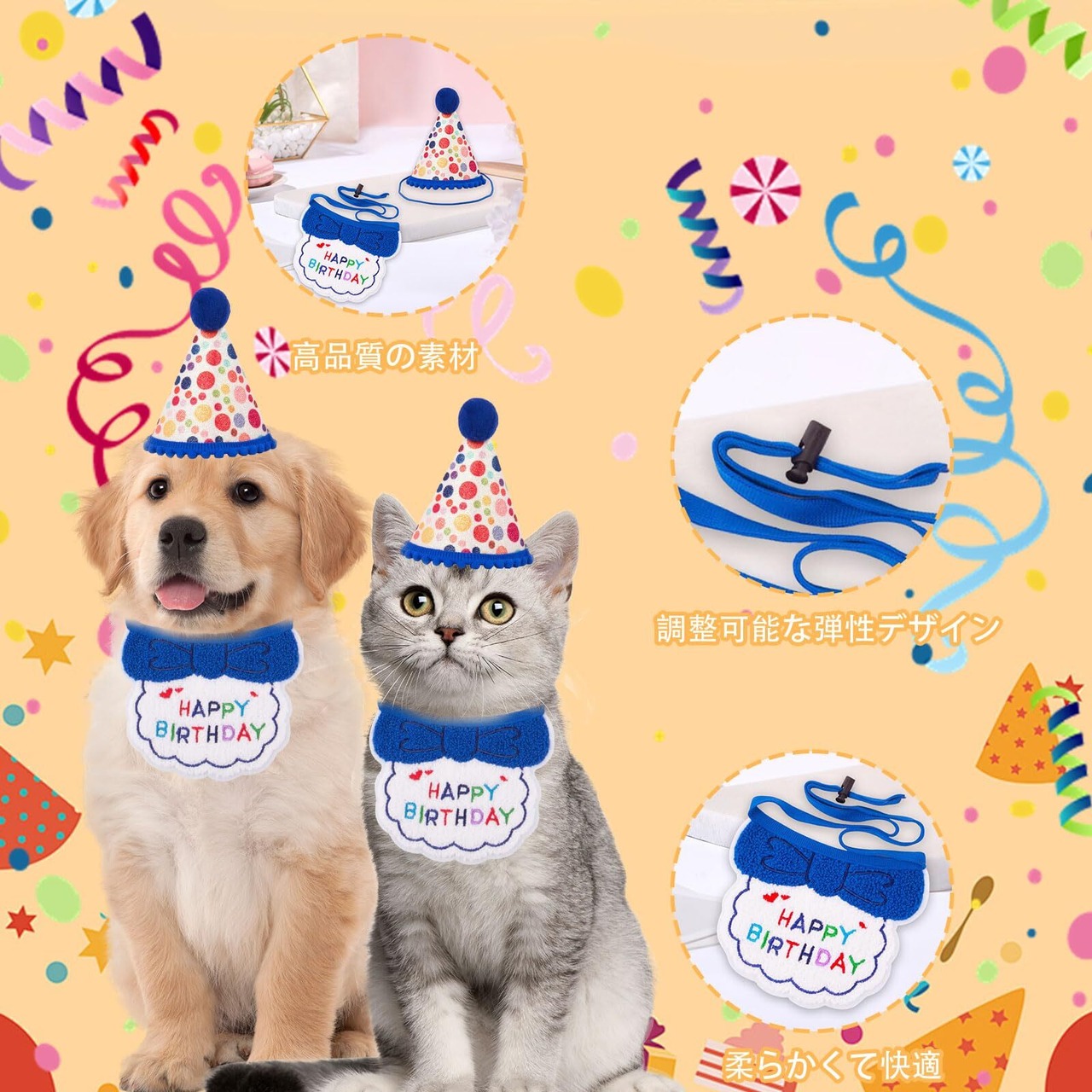 犬 誕生日 帽子 3点セット 犬 猫用 誕生日グッズ ペット よだれかけ バンダナ スタイ 唾液タオル HAPPY BIRTHDAY 数字付き 飾り付け 可愛い おしゃれ ペット服 お祝い バースデー 記念日 パーティー飾り プレゼント 写真撮影 ペット用品 (ブルー)
