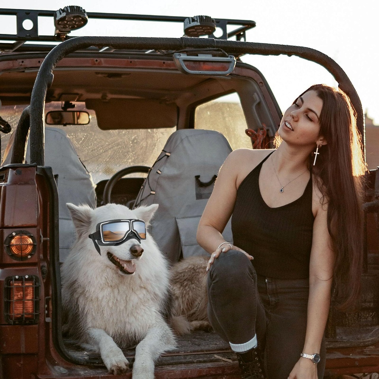 中型犬や大型犬用ゴーグル: ラブラドール、ゴールデンレトリバー、グレートデーン、ドーベルマンなどの犬種にも適しています。このサングラスは車での旅行、強風のハイキング、そのほかのアウトドアアクティビティに非常に役立ちます。