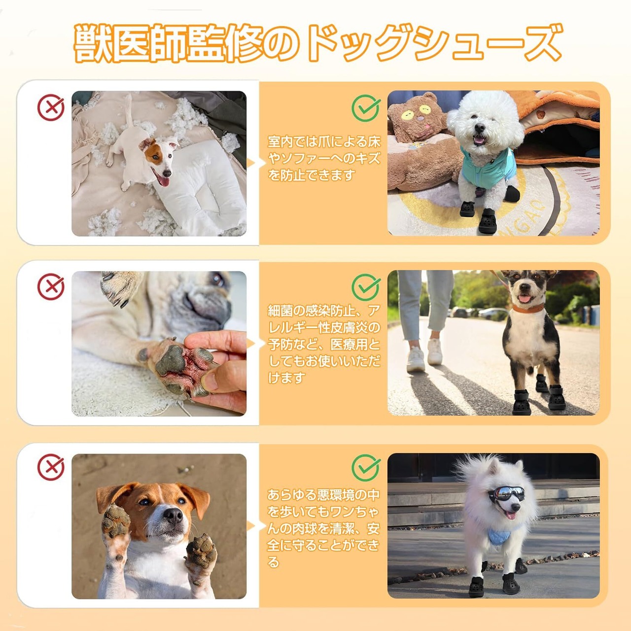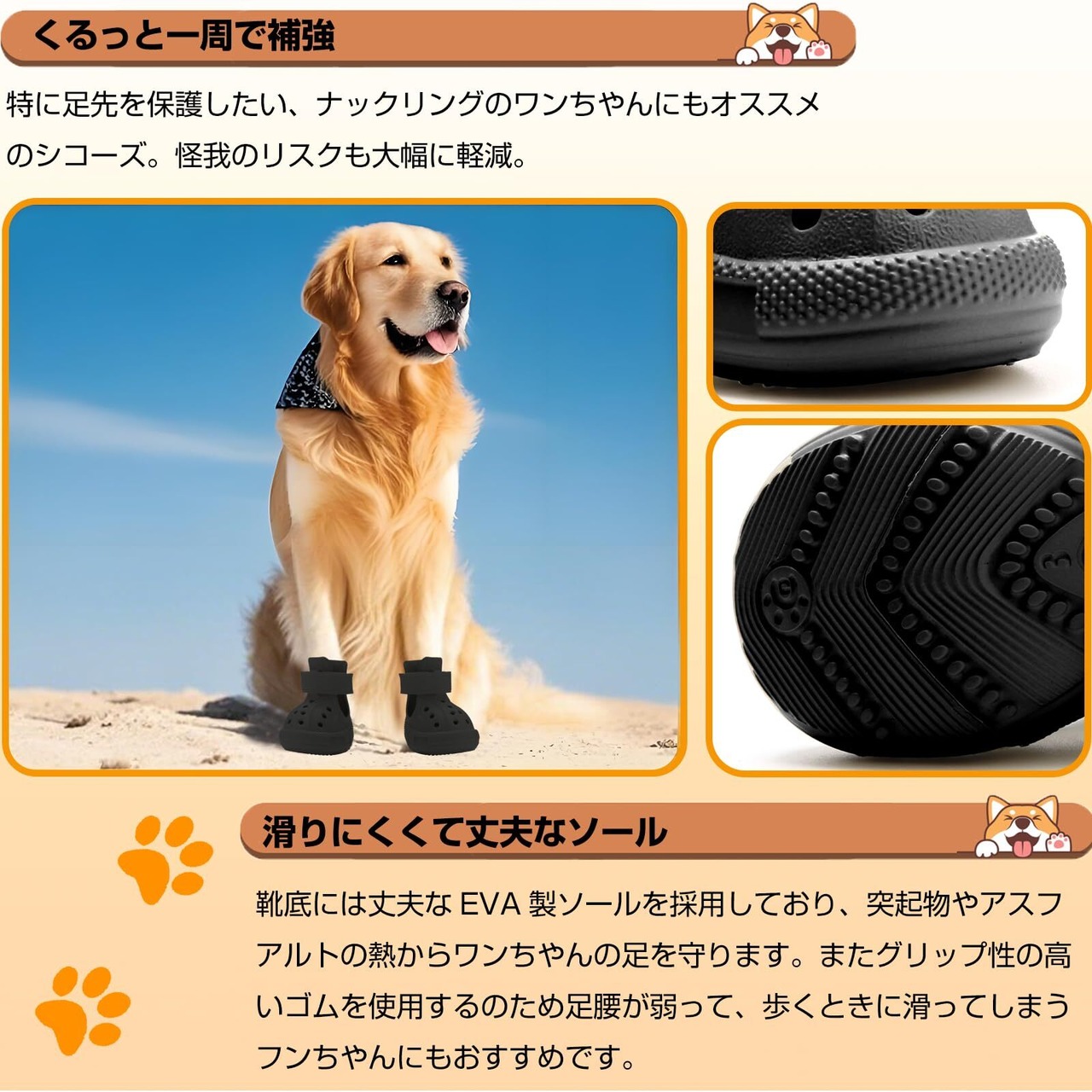 【EVA製・軽量&柔軟性】 アッパーもソールも高品質なEVA素材を採用し、とても軽量で柔らかいで、履き心地がいいです。足に負担をかけず、長時間の使用でも疲れにくいです。また、ペットが歩く際の自然な動きを妨げないため、ストレスフリーで歩行を楽しむことができます。特に足先を保護したい、ナックリングのワンちやんにもオススメのシコーズ。怪我のリスクも大幅に軽減。
