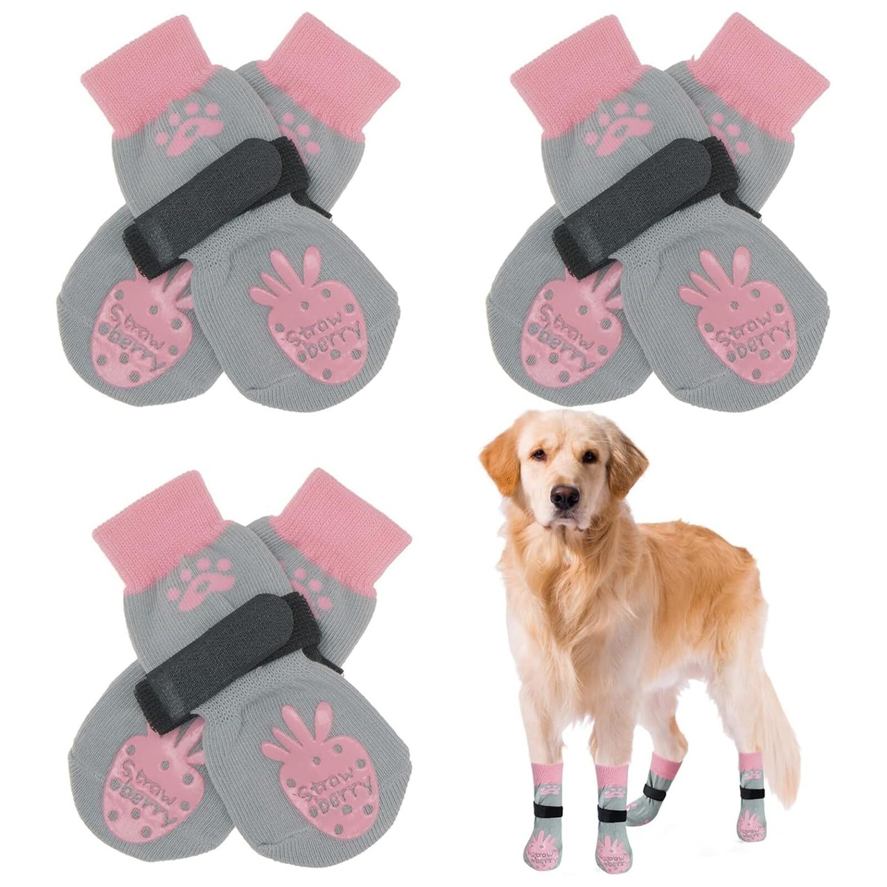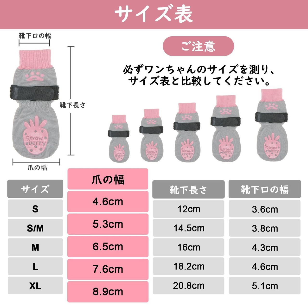 BINGPET 犬 靴下 犬用 滑り止め 6個セット ペット 肉球保護 足舐め防止 犬用靴下 マジックテープ付き 柔らかい 脱げにくい おしゃれ かわいい ペットソックス 犬用ソックス 転倒防止 屋内用 通気性 介護 老犬 サポート 小型犬 中型犬 大型犬 シニア犬 (イチゴ ピンク, S)