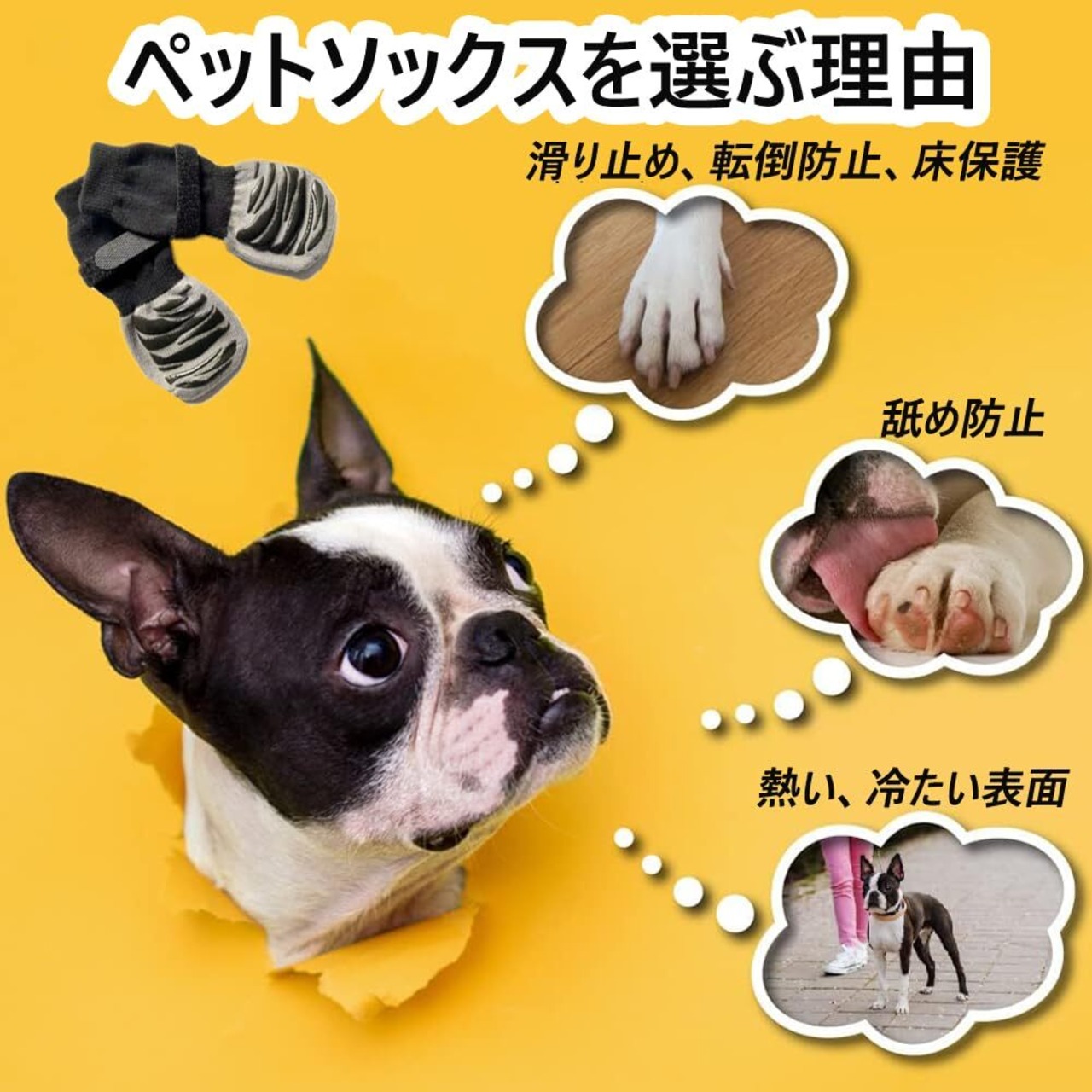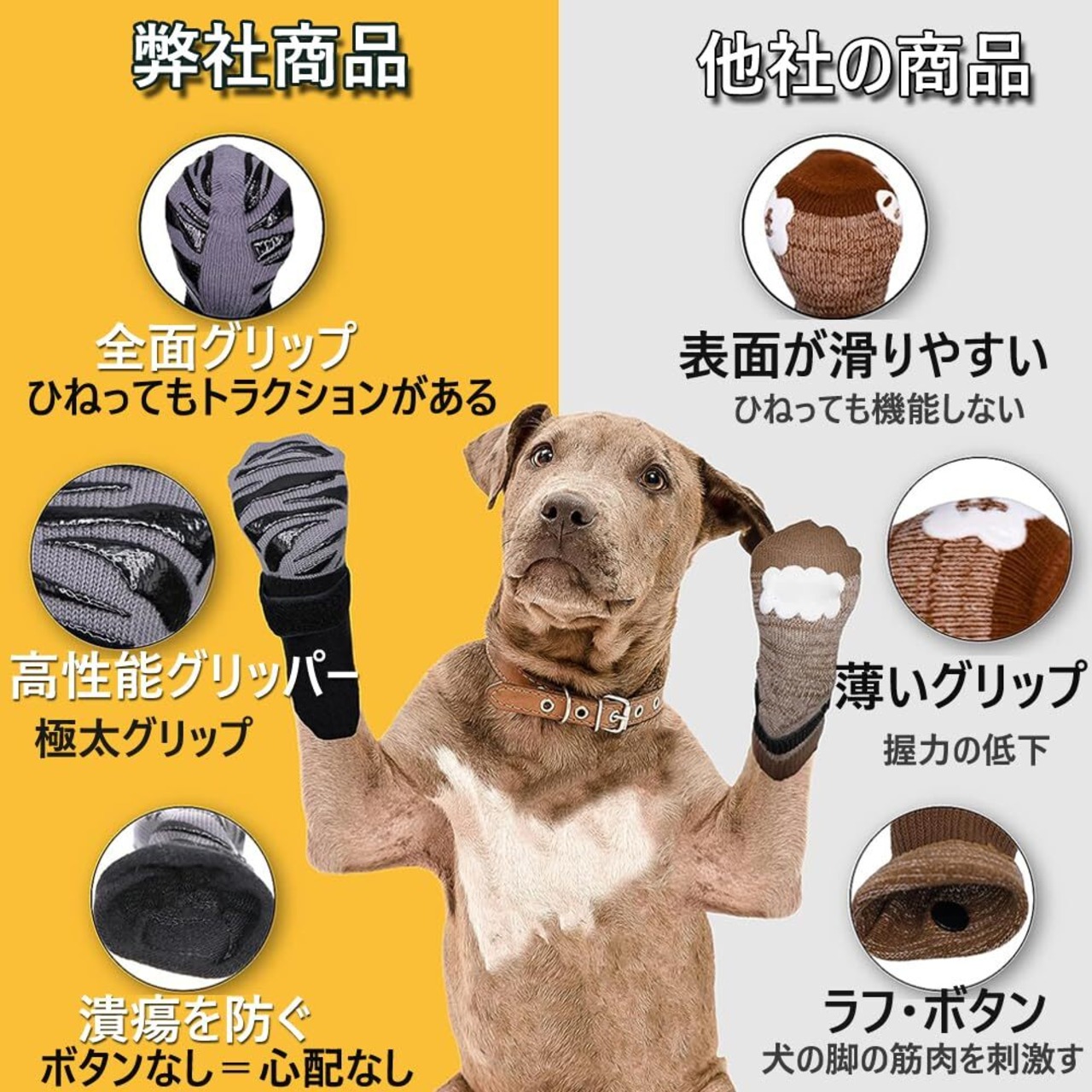 【優れた滑り止め】ペットソックスの両側には滑り止めのゴムパターンも付いているので、滑りにくく、愛犬が階段や床で滑るのを防ぎます。