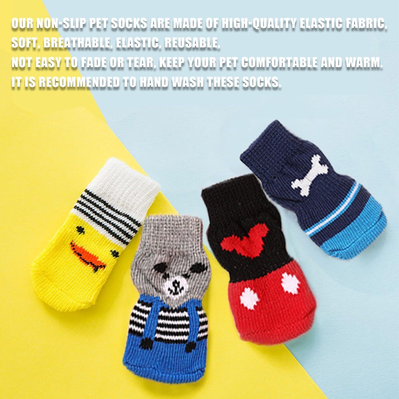 【ペット用靴下】可愛い犬用靴下です。動物のパターンが綺麗でおしゃれです。厚すぎず薄すぎず、一年中快適にお使いいただけます。
