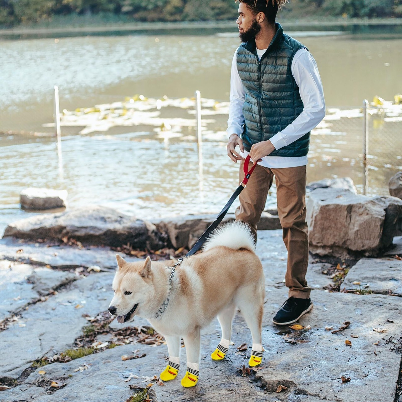 犬 靴下 4個セット 犬用靴下 滑り止め 脱げない 犬 ソックス 肉球保護 防寒 可愛い ペット 靴下 舐め防止 汚れ防止 室内 室外 お出かけ 小型犬 中型犬 (イエロー, S)