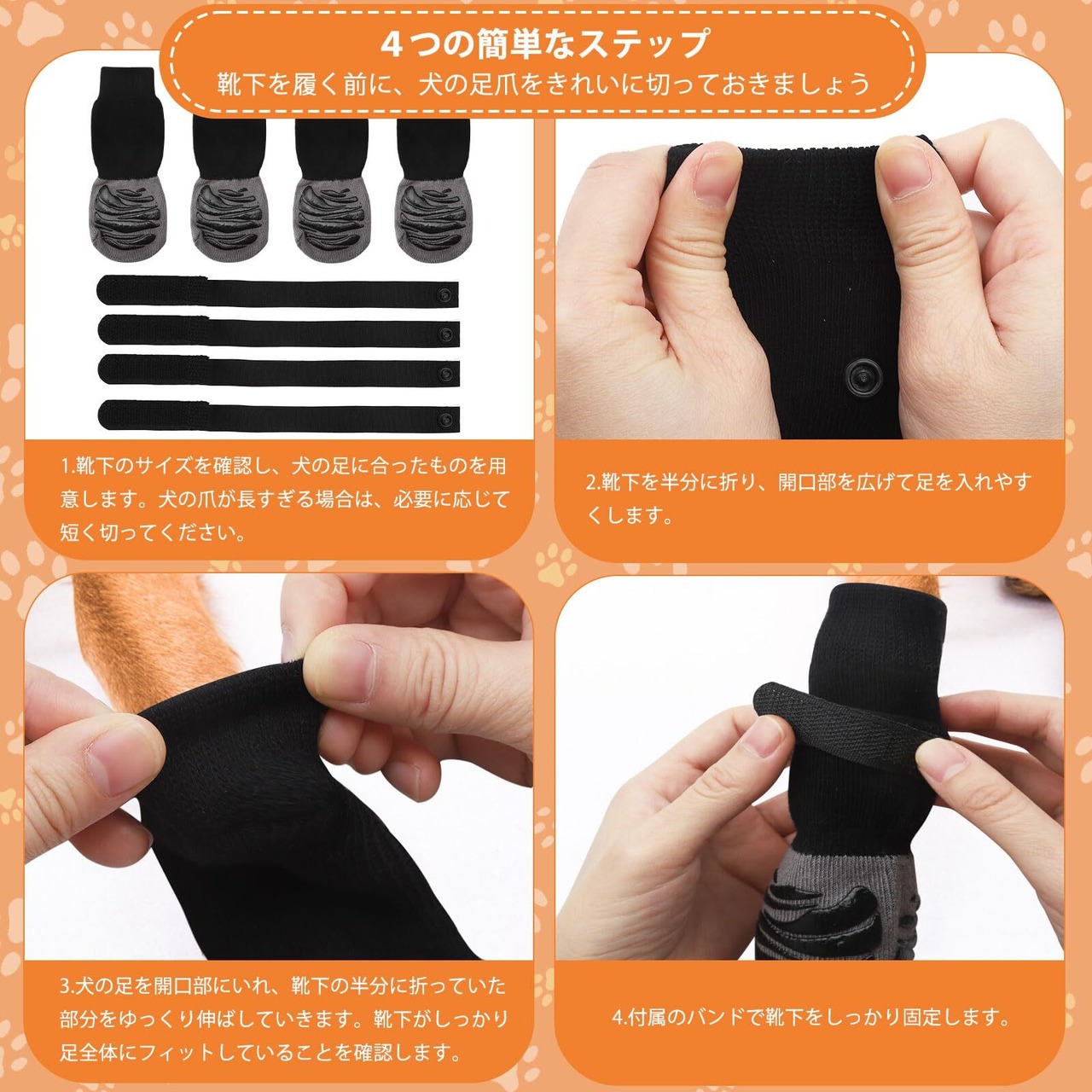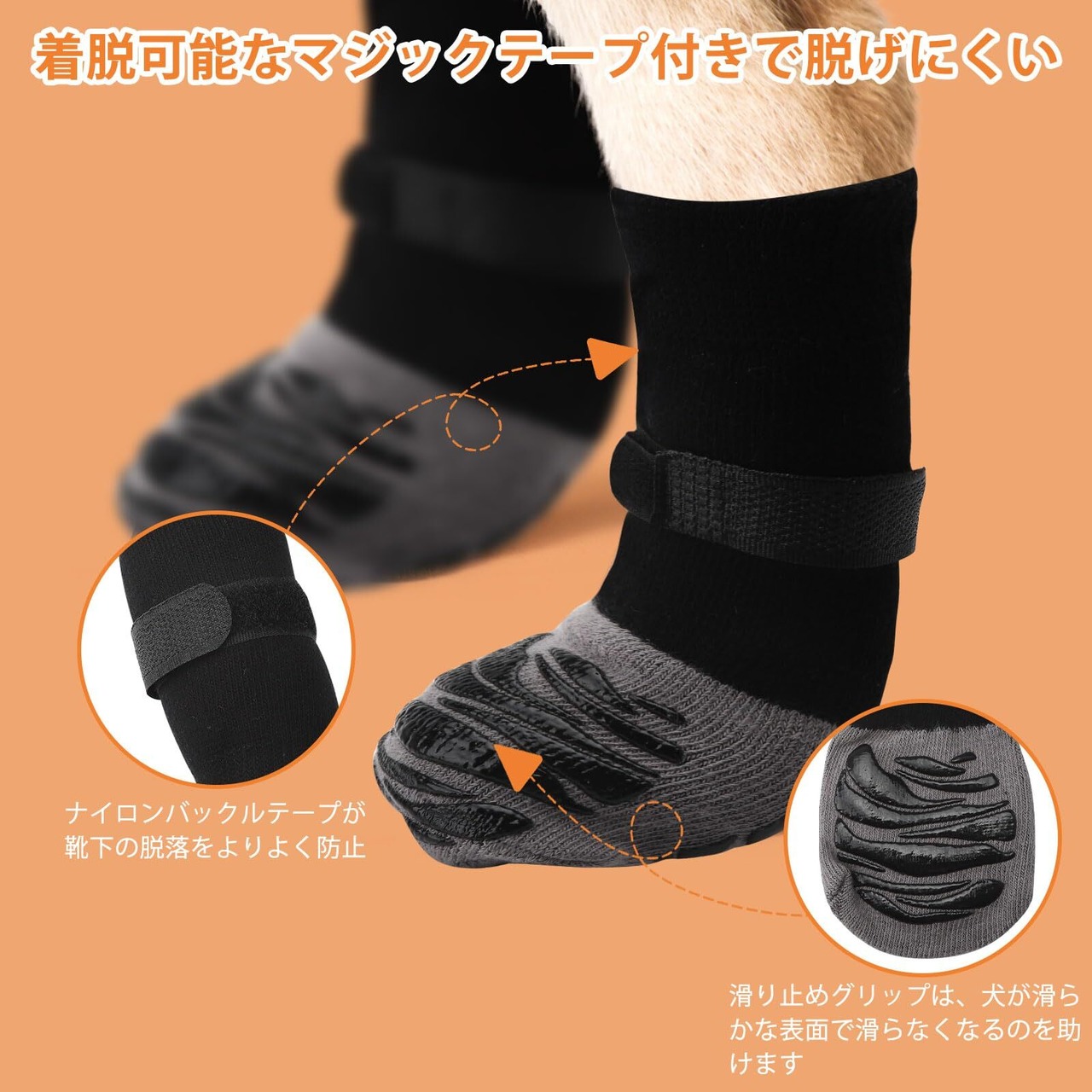 【最新登場】この犬 靴下は、着脱可能なマジックテープ付きで脱げにくいです。非常に強力なグリップデザインを採用しており、広範囲に360度カバーすることで、ペットが安定して歩行できるようにします。