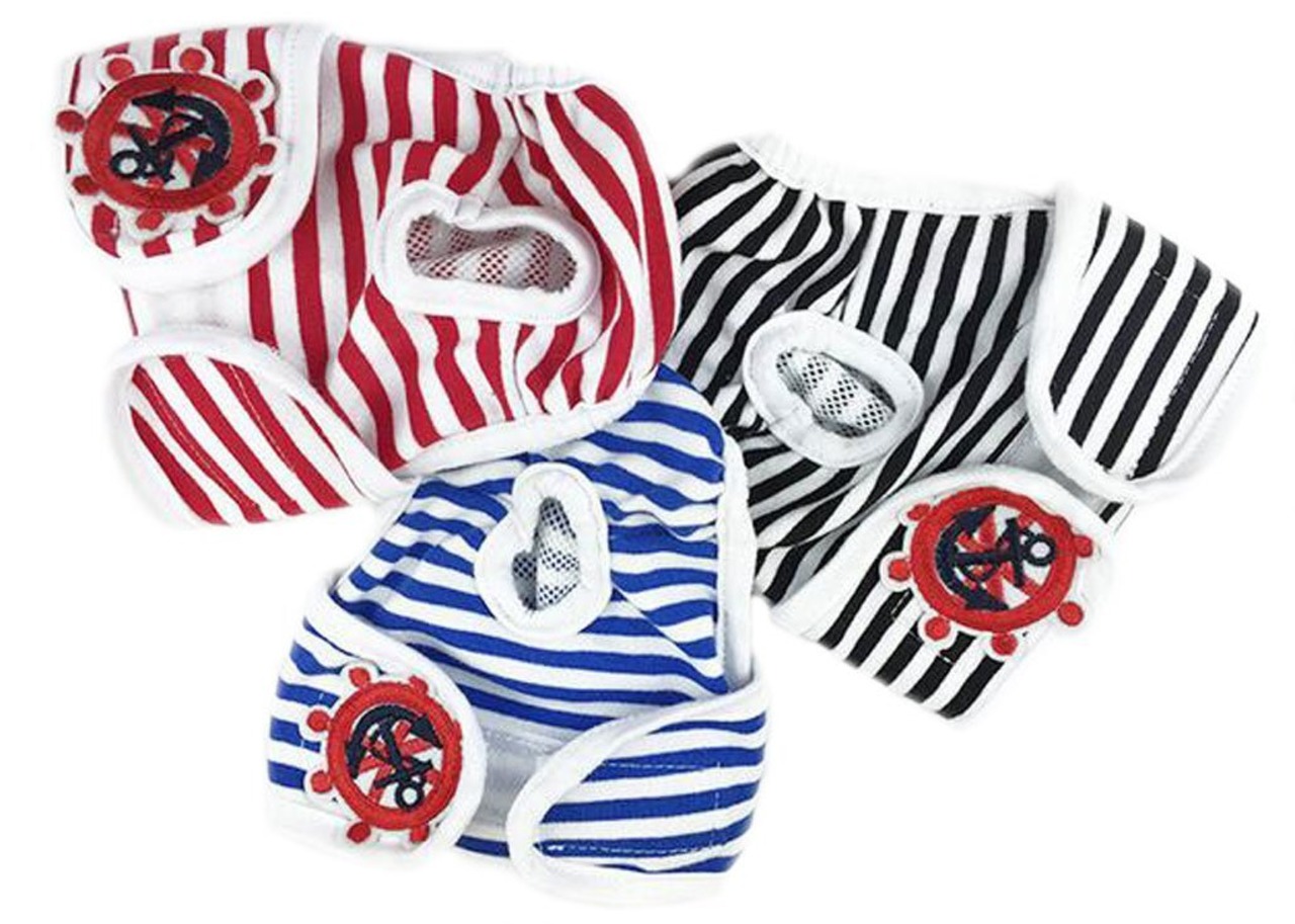 小型犬用 ボーダー 船錨柄 マナーパンツ 生理パンツ 犬の介護・生理用・おもらし対策 お出かけ しつけ用品 おむつカバー ペット服