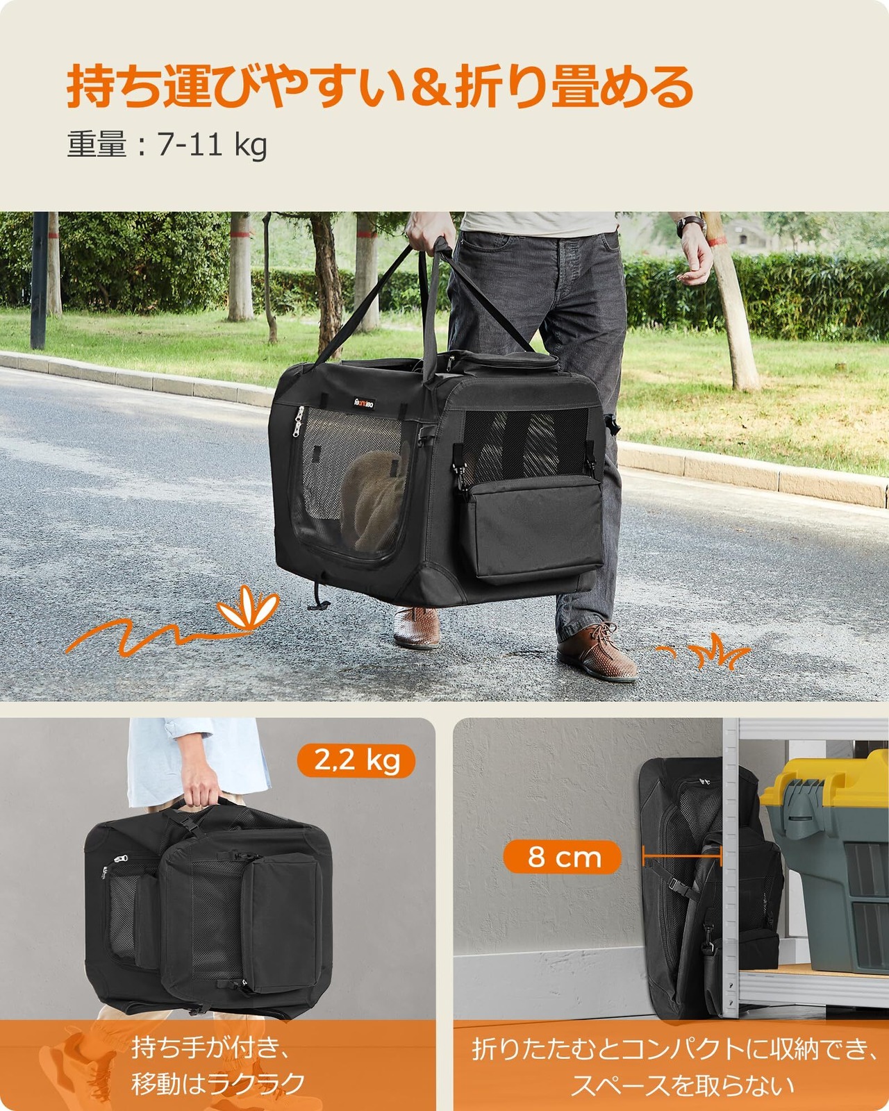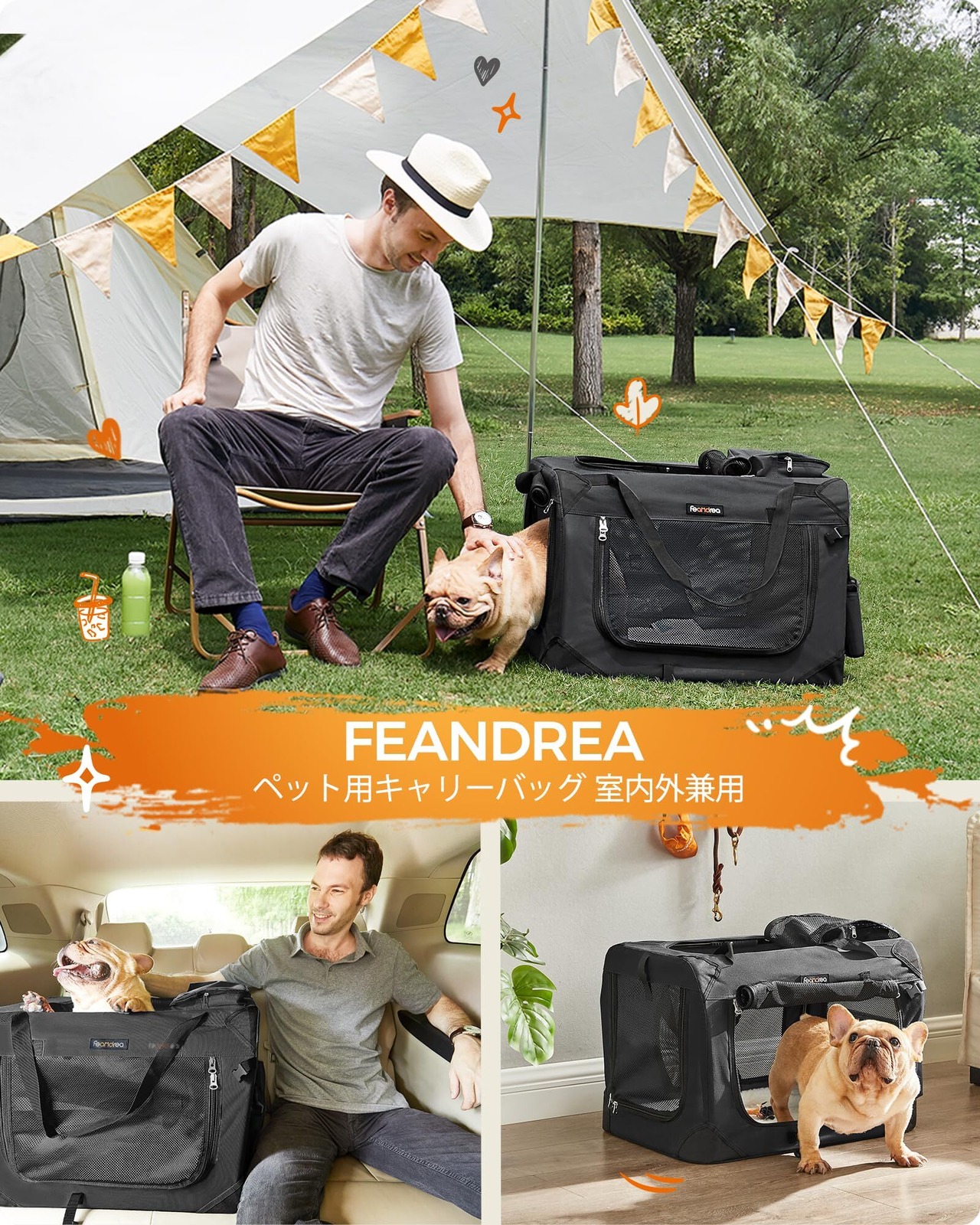 FEANDREA ペットキャリー 折りたたむ 変形しない犬用キャリー 4面メッシュ ブラック 60×42×42cm PDC60H