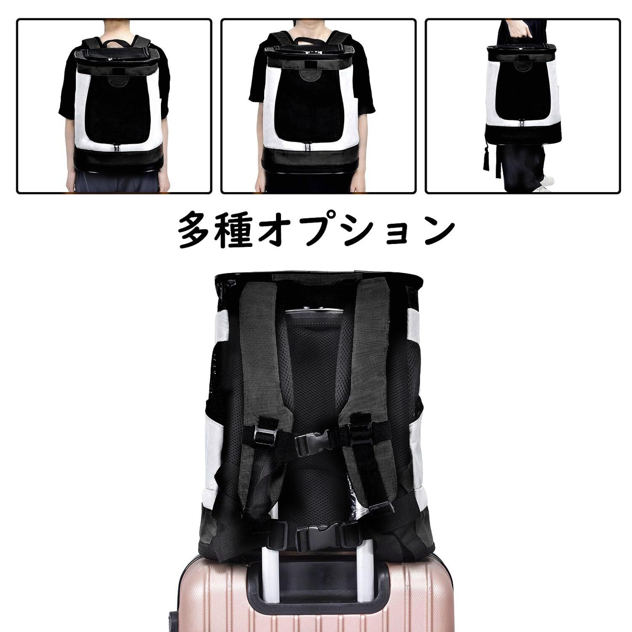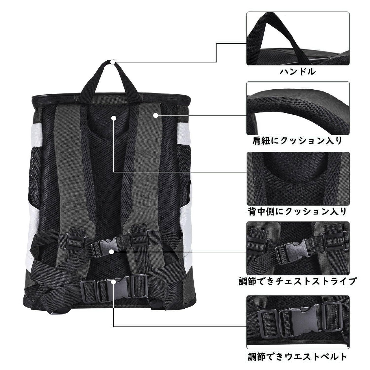 Pettom ペットキャリーリュック 猫 きゃりーバッグ 犬リュック 通院 旅行 避難 お出かけ用 崩れない おりたたみ ペットキャリー (ブラック)