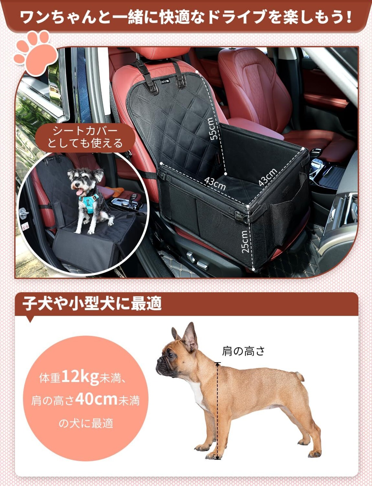 KYG ドライブボックス シートカバー 2WAY ドライブペット 型崩れしない 飛び出し防止リード付き 中敷き付き 折り畳み可能 滑り止め 防水 助手席 後部座席 小型犬用