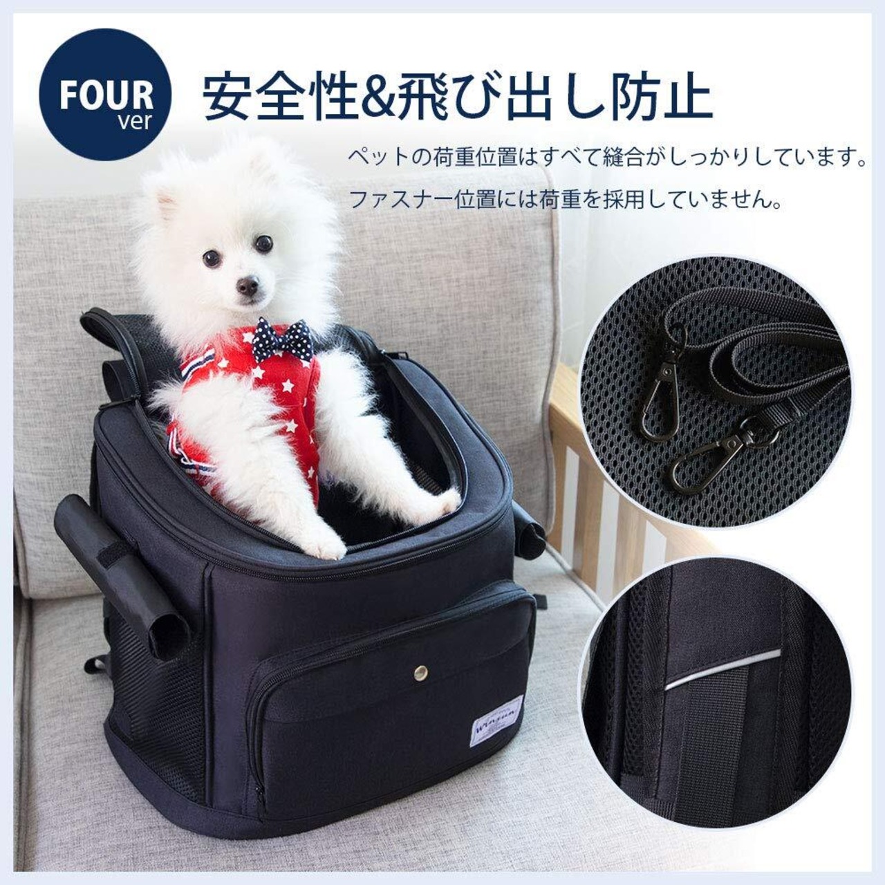 【収納スペース】日用品を収納できるペット リュックの前面に加えて、背面にもメッシュポケットのデザインがあり、通気性があり蒸れません。小さなタオルやその他の平らなものを置くこともできます。背中の快適さ。また、折りたたみ可能なデザインなので、折りたたんでクローゼットやクローゼットの隙間に保管でき、非常に便利です。