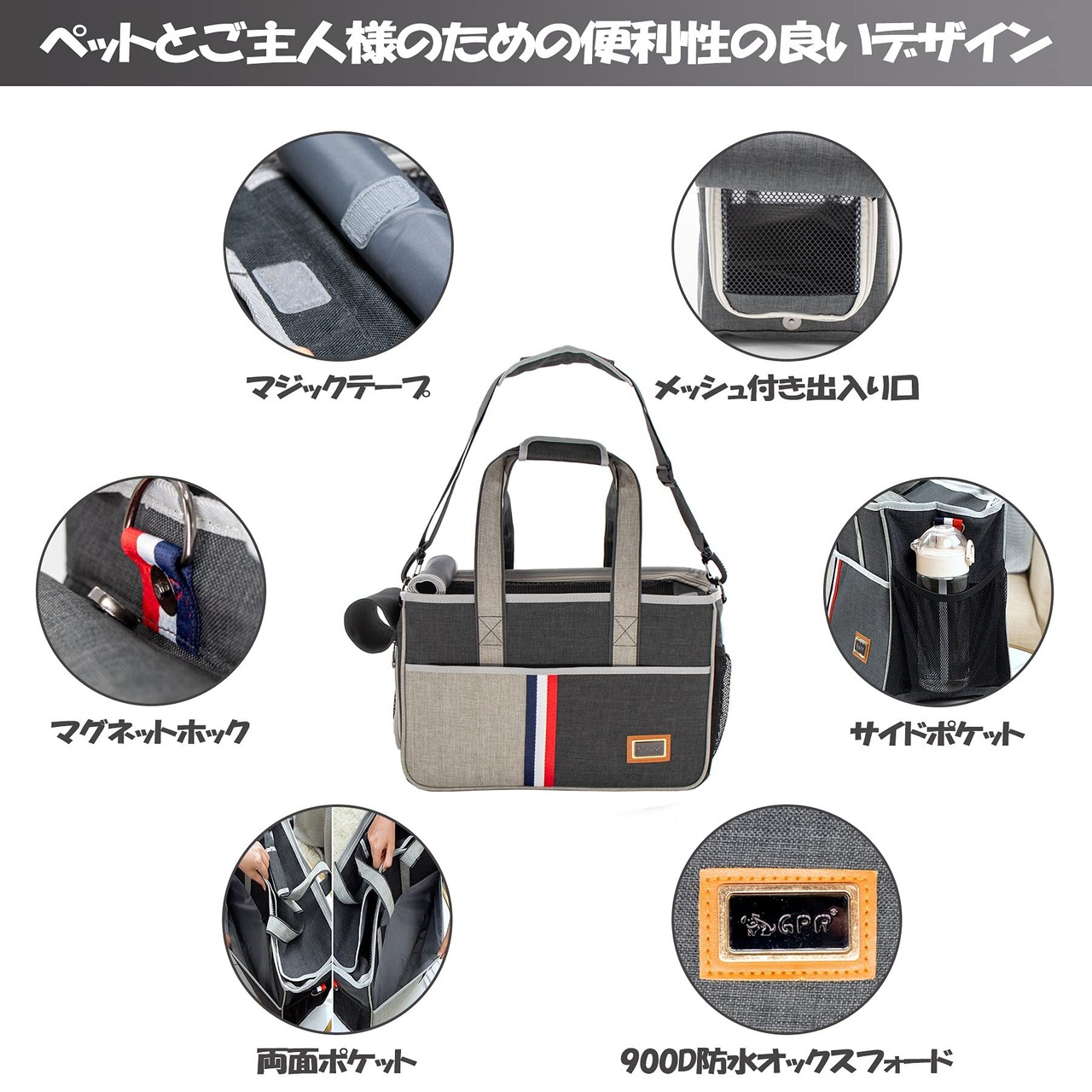 丈夫さ&防水性能:耐摩耗性を持つ丈夫な900D防水オックスフォード生地と特殊メッシュ素材を使用しており、ペットの噛み付きにも安心、いたずらや事故防止のため、内側に飛び出し防止リードがついています。内部の下に取り出せるプラスチックのマットも付きます、安定性の上、形も崩れ難いです。出入りは両側にも上にもできます。
