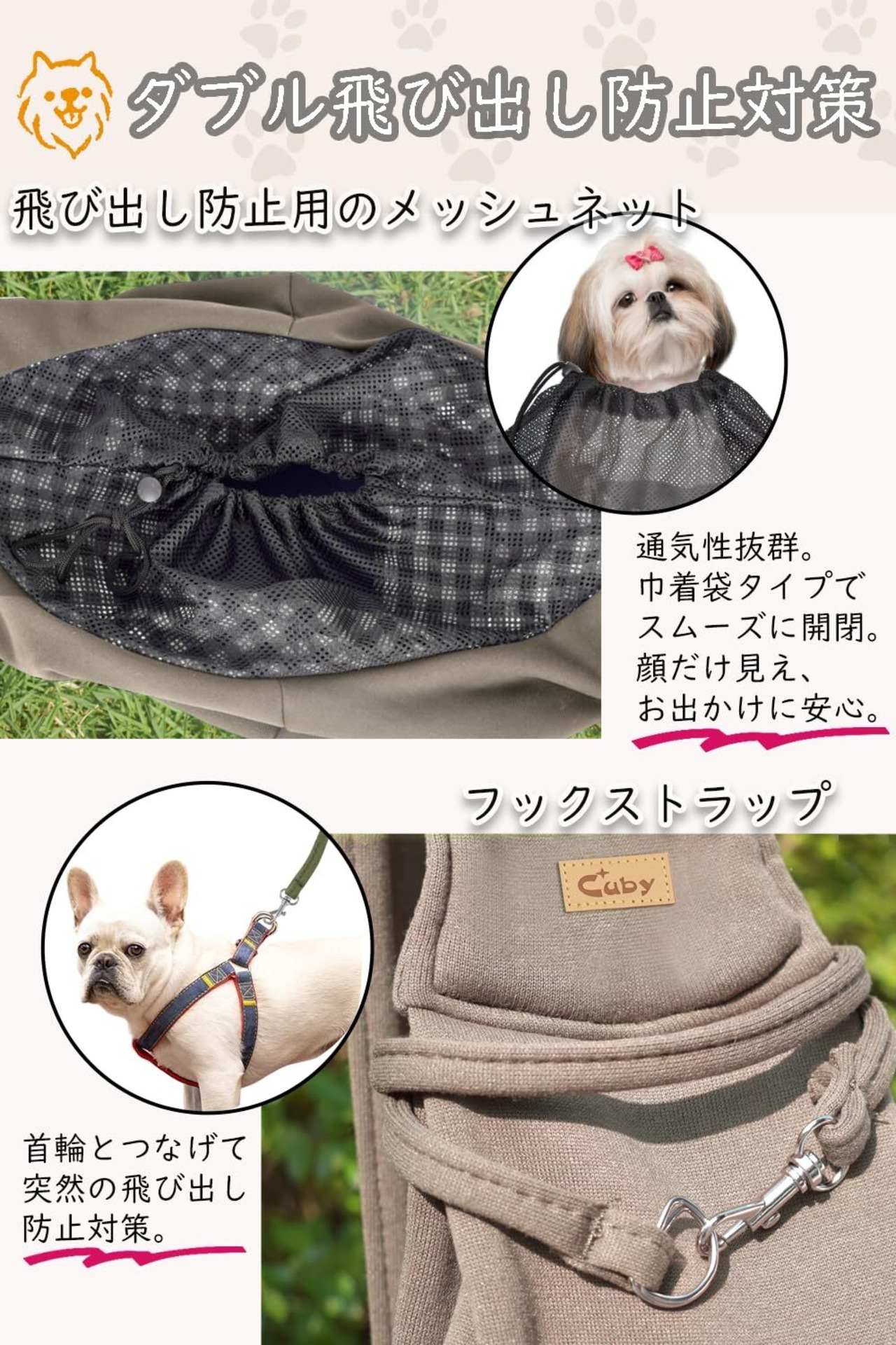 【ダブル飛び出し防止】抱っこ紐犬用は通気性抜群のメッシュネットと飛び出し防止のストラップが付き、顔だけ見え、お出かけに安心です。6kgまで対応でき中小型犬だっこひもです。