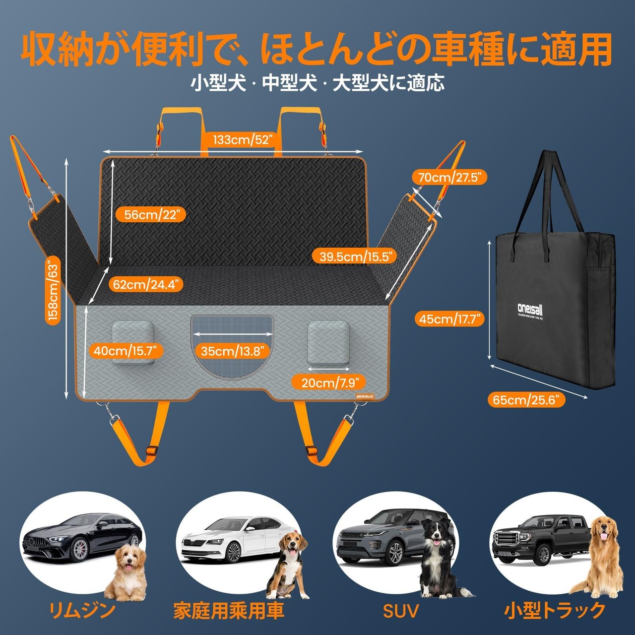 【収納が便利・ほとんどの車種に適用】折り畳み式の犬車シートは、収納と持ち運びに便利です。ペットドライブシートのサイズはほとんどの車種に合っています(リムジン、家庭用乘用車、SUV、小型トラック等)、高荷重のため、様々な犬にも適用されます(小型犬·中型犬·大型犬に適応)。取り付けも取り外しも易い、収納ポケット付き、ドライブ、旅行、ピクニック、キャンプなどのアウトドア活動に適しています。