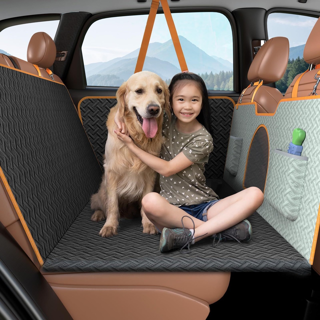oneisall 犬 車 シート ドライブシート ペットドライブシート 【座席硬化 落ち防止】犬車に乗せるグッズ ペット用ドライブシート 車 ペットシート 後部座席用 防水 汚れ防止 耐摩 滑り止め 折り畳み式 可視メッシュ窓 通気性 犬用 車シート ドライブシート 犬 ペットシート 車 カーシートカバー お手入れやすい 収納ポケット付き 取付簡単 アウトドア 大型犬 小型犬 全種犬用 猫用