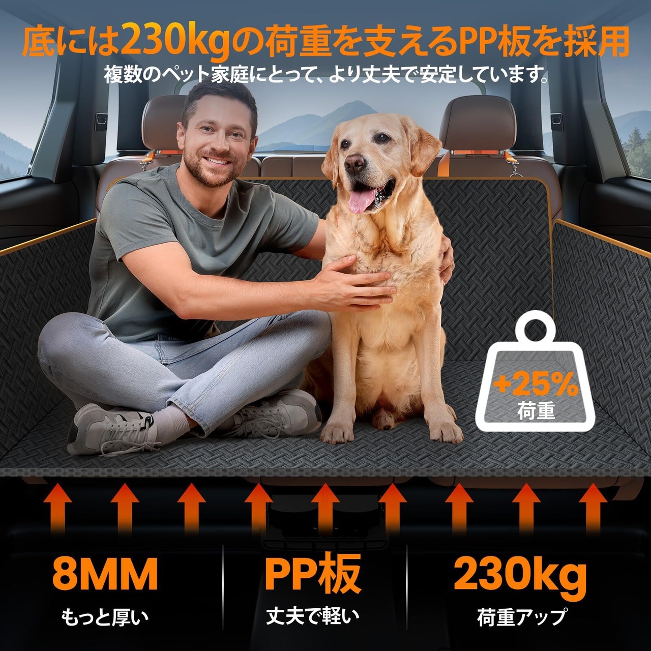 【高荷重・多犬家庭に適用・PP板取出し可能・洗濯機で洗え】車犬シートの底にある8mm厚さのPP板は230KGに耐えることができ、犬が多い家庭に適用されます。柔らかい犬車シートに比べて、硬い犬ドライブシートは座席に固定して動かないので、ペットにとってより安全です。底のPP板は取り出すことができ、普通のビーチマットとして使用でき、掃除にも便利です。