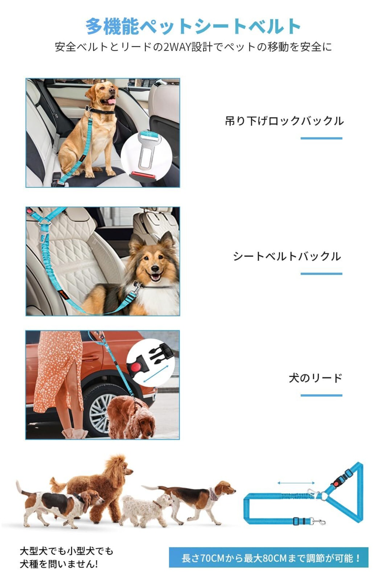 【シートベルト&メッシュ窓】シートベルト付き、ペットの飛び出すことが心配ありません。伸縮あり、長さ調節可能で長時間に付けでもペットに負担がかからないです。メッシュ窓付きで空気循環が良く、飼い主とペットがお互いの様子を確認しやすく、不安感を和らげます。