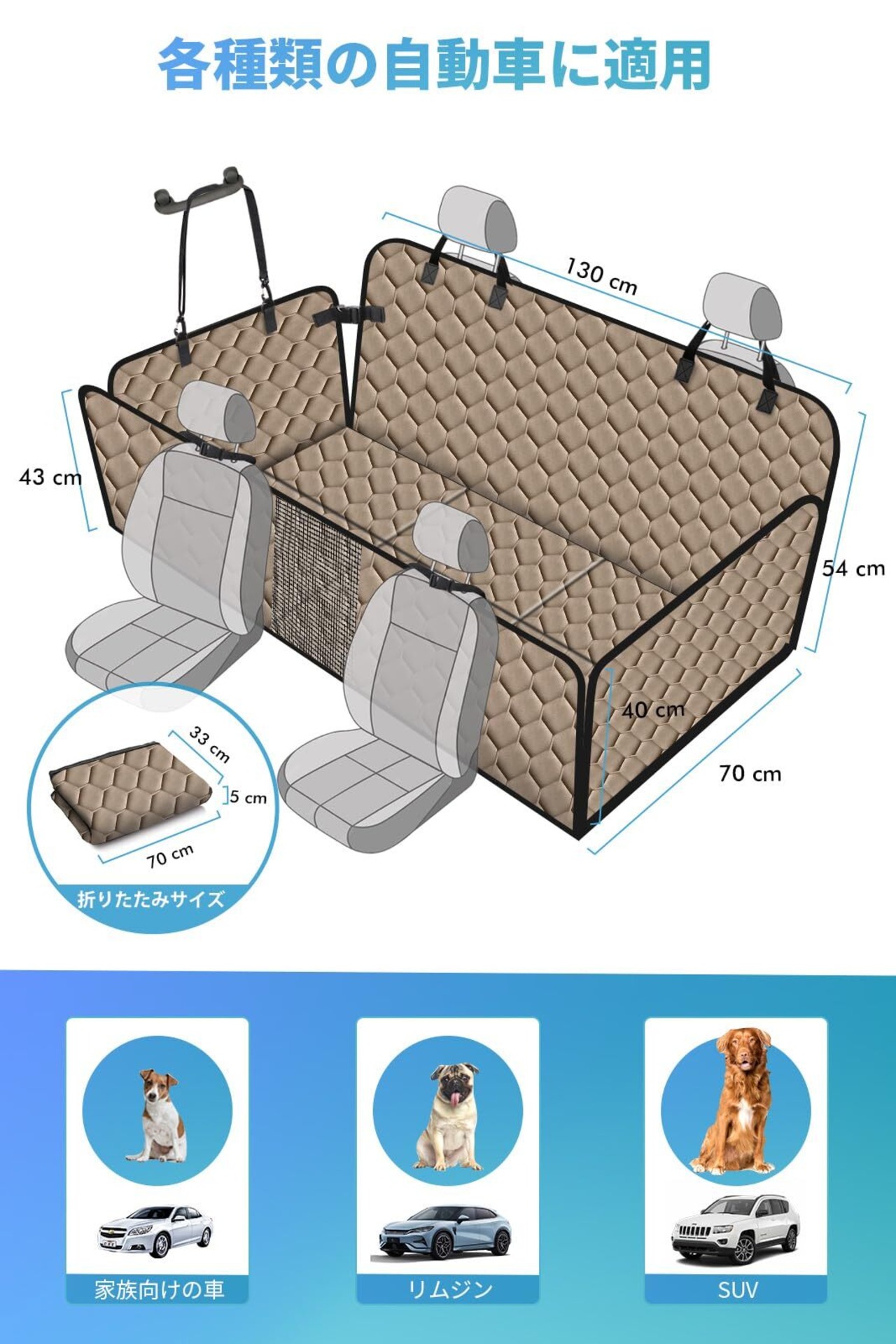 【汎用タイプ&1年安心】サイズは130 x 70cmで、ほとんどの車と中型SUVに対応。1年間の付きで、製品に関するご質問や不具合があれば、いつでもご連絡ください。