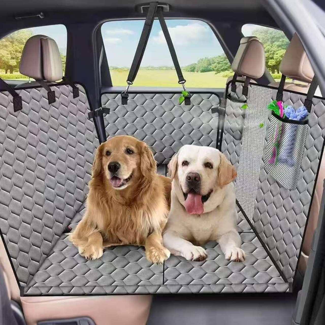 Xevera ペットドライブシート 安定快適 犬シートベルト付き 犬 車 シート 全車種 防水 傷つきにくい 犬用カーシート 取付簡単 可視メッシュ窓 車ペットシート お手入れやすい (グレー2, フリー)