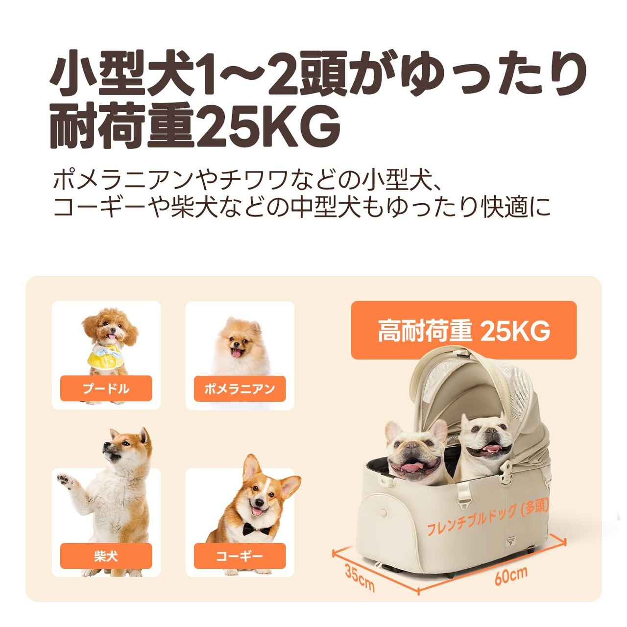 【1秒瞬間折りたたみ分離型】ペットカート 小型犬 ワンタッチ全車折りたたみ 五つの一秒 超絶便利 分離式 25KG耐荷重 犬用カート 自立型 広い空間 多頭 中型犬 犬バギー 猫 多機能 犬用ベビーカー (ベージュ)