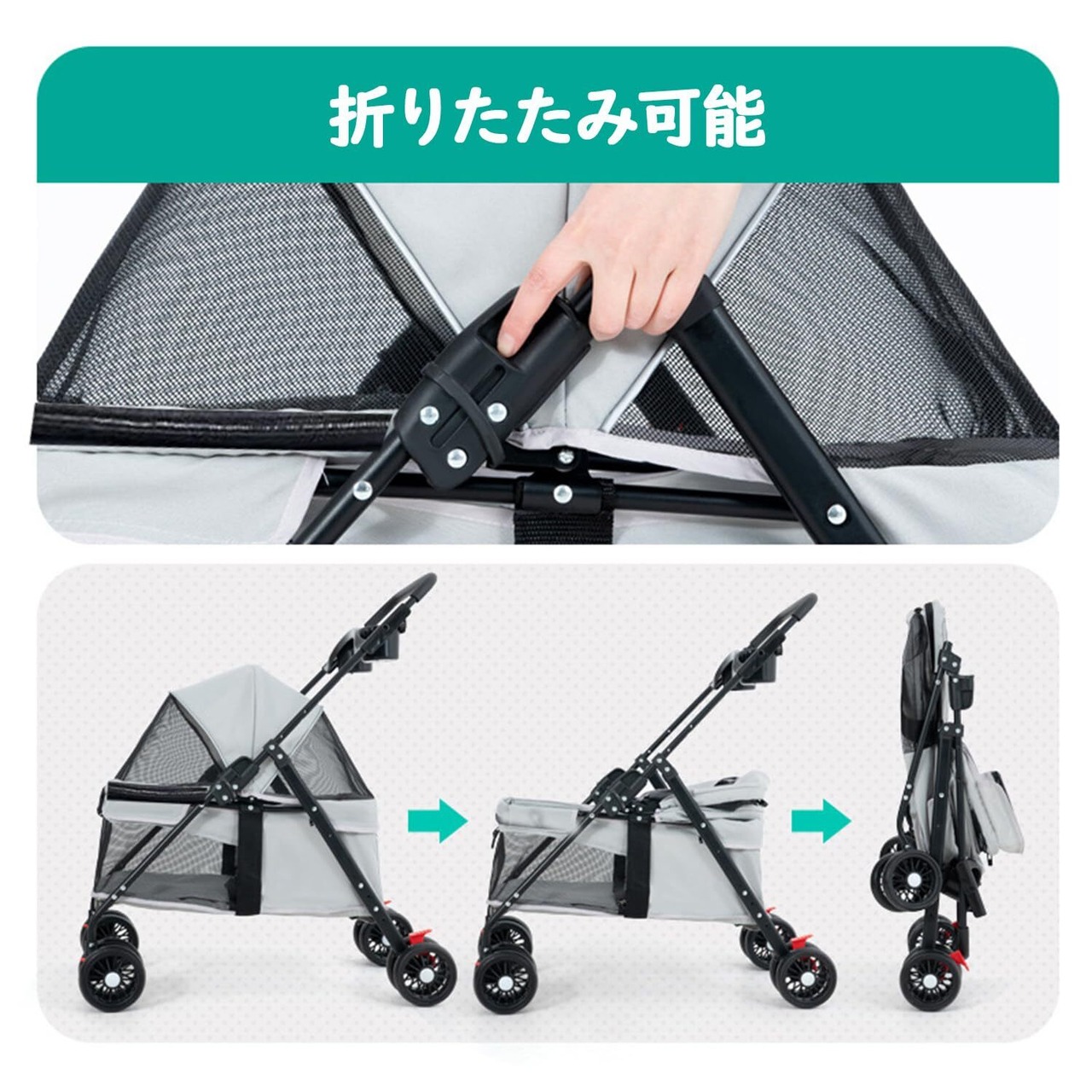 【軽量・コンパクト】このペットカートは、軽量な素材を使用しているため、持ち運びが非常に楽です。移動時の負担を軽減し、特に女性や高齢者にも優しい設計です。持ち手が付いているため、移動時にも簡単に持ち運ぶことができます。また、旅行やお出かけの際にも便利で、ペットと一緒に楽しい時間を過ごせます。