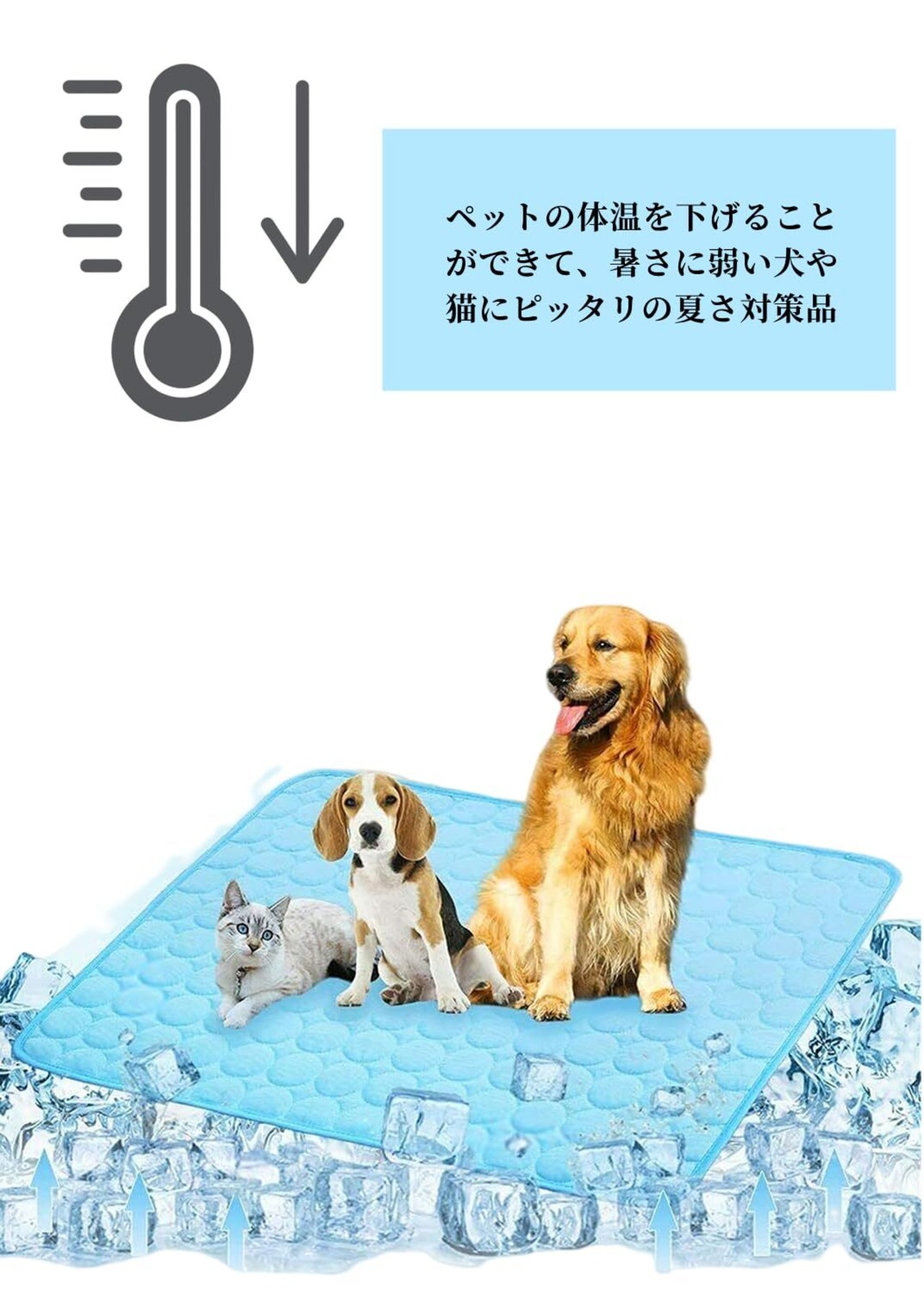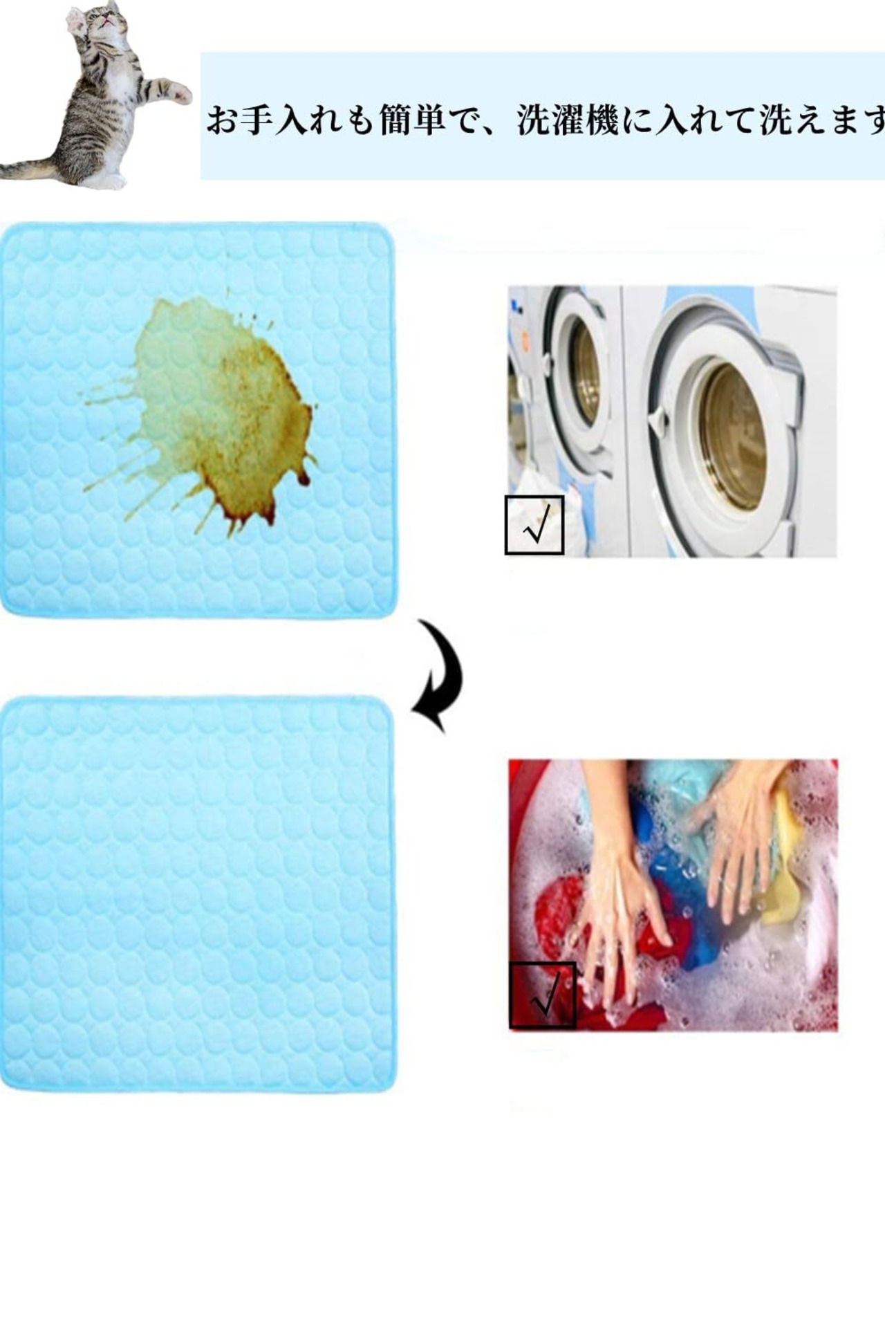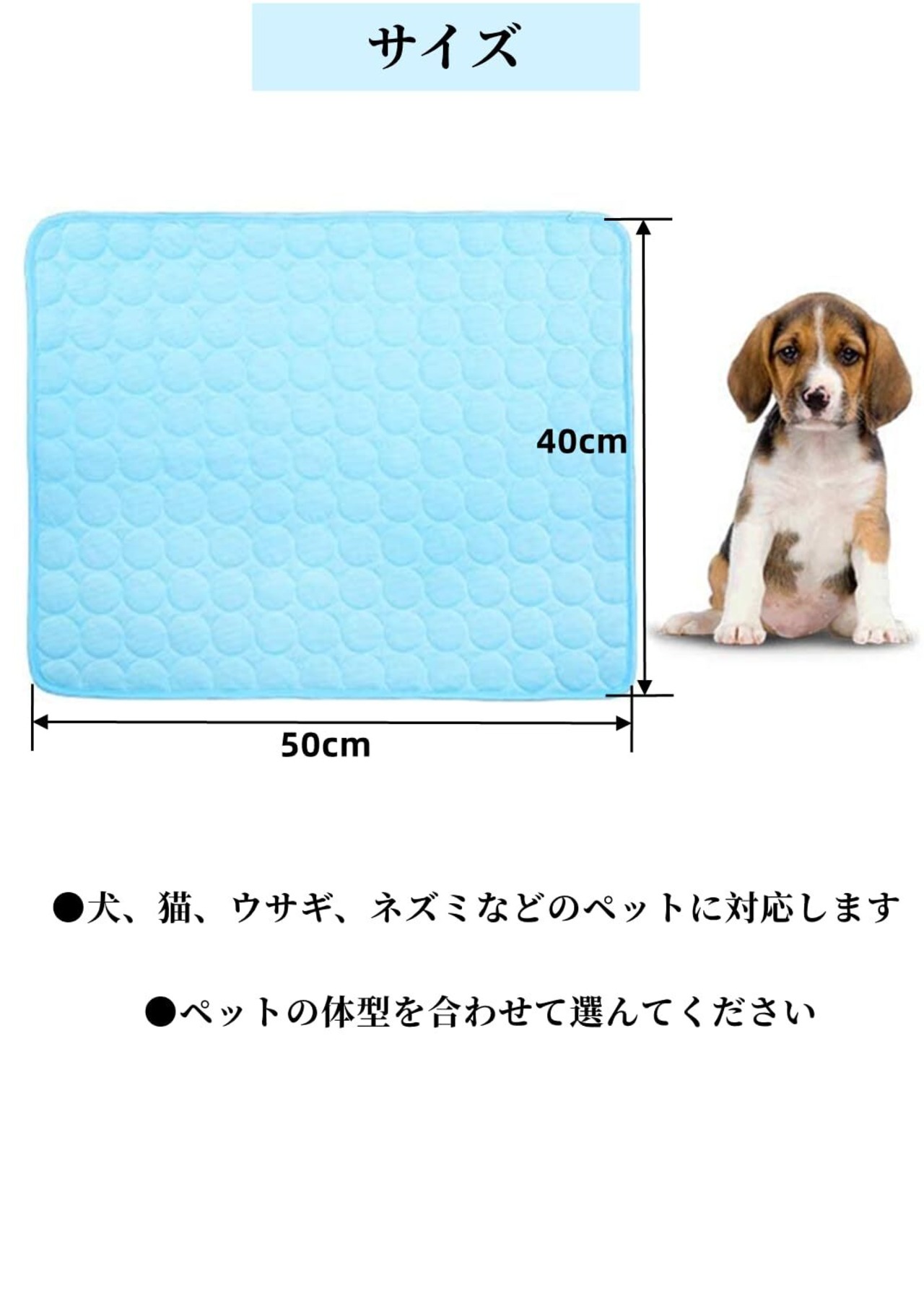 【高品質素材】冷感マットの表面は熱伝導性の高い繊維素材を採用し、接触すると涼感冷感が感じられて、 ペットの体温を下げることができて、暑さに弱い犬や猫にピッタリの夏さ対策品。